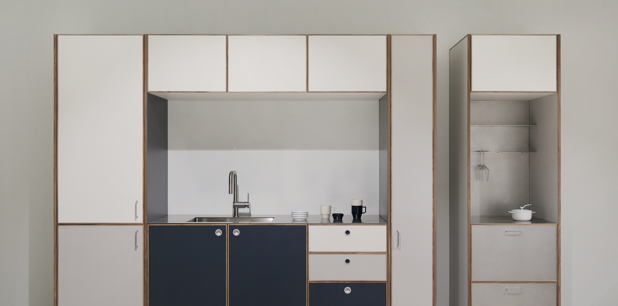 도어 마감재는 MMK의 17가지 컬러 팔레트, 천연 무늬목, 또는 메탈 패널을 자유롭게 조합할 수 있습니다.