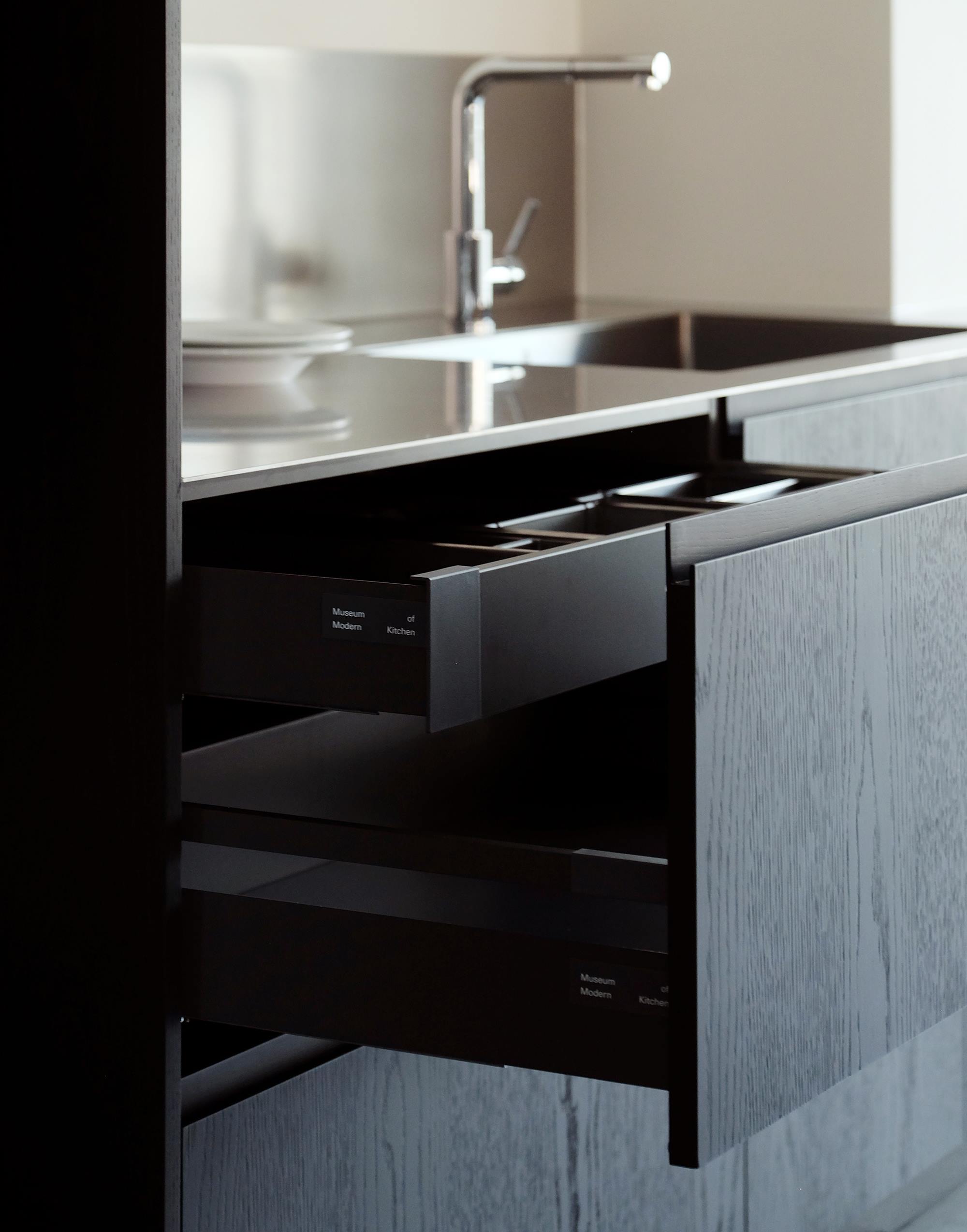 양면 서랍형 아일랜드에는 상단 속서랍을 추가하여