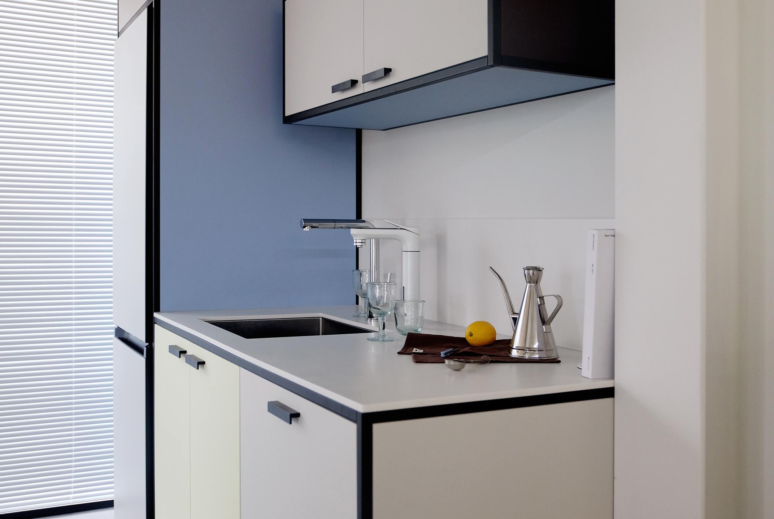 MMK 키친은 작고 아담한 사이즈의 키친을 만날 때 더 창의적이고 독창적인 힘을 가집니다. 아담한 사이즈의 YN 프로젝트 키친은 볼드한 블랙 프레임이 둘러진 센츄리 키친에 YN 프로젝트 키친만의 디자인 포인트로 작용할 블루와 옐로우 컬러를 더해 드라마틱하게 분위기를 전환하며 효과는 탁월합니다. MMK에게 키친은 단순한 기능의 공간을 넘어 사람들의 일상 속에서 위로와 활력이 되어줄 배경입니다.