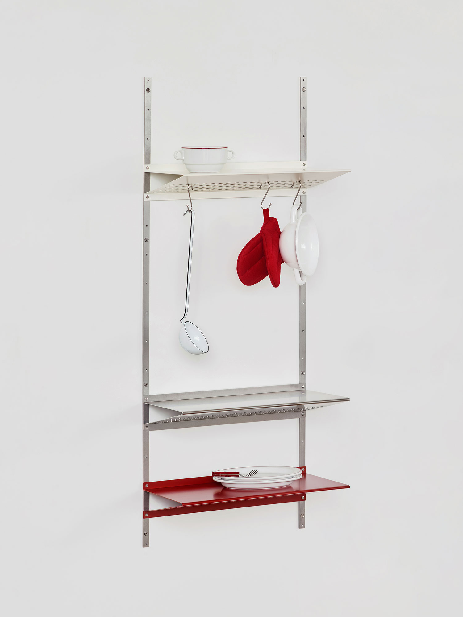 정체성을 직관적으로 시각화하는 조형 언어를 가진 벽 선반입니다.