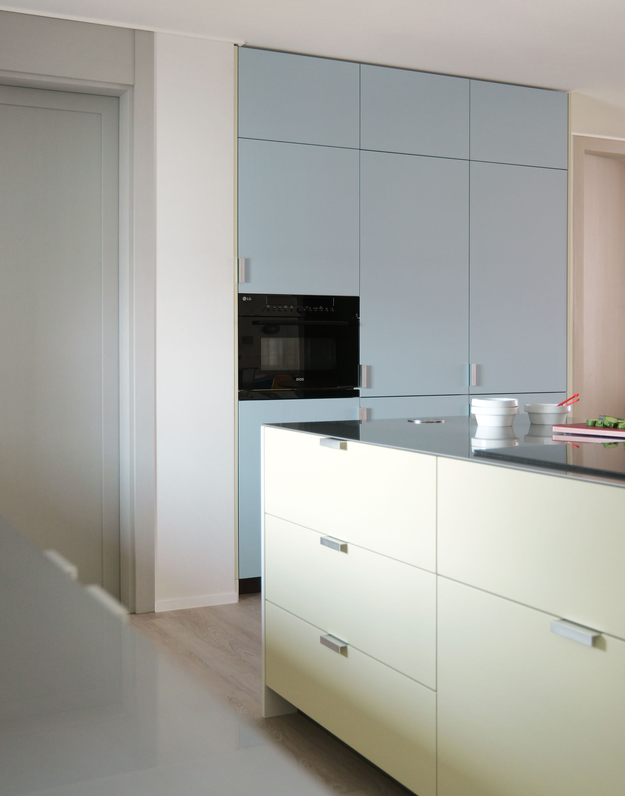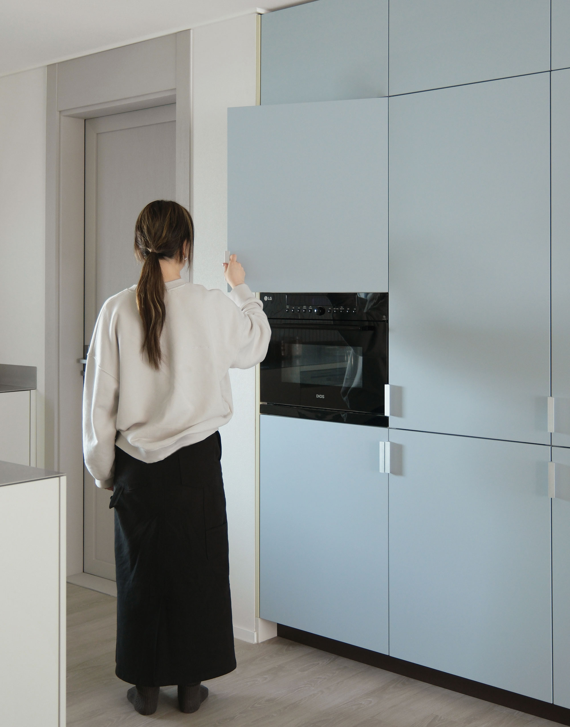 포인트 컬러를 더해 독창적인 키친으로 완성합니다.