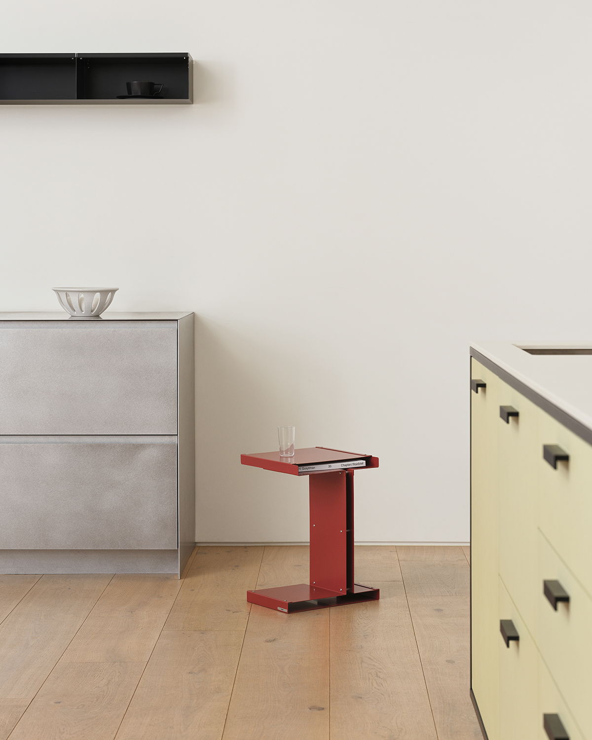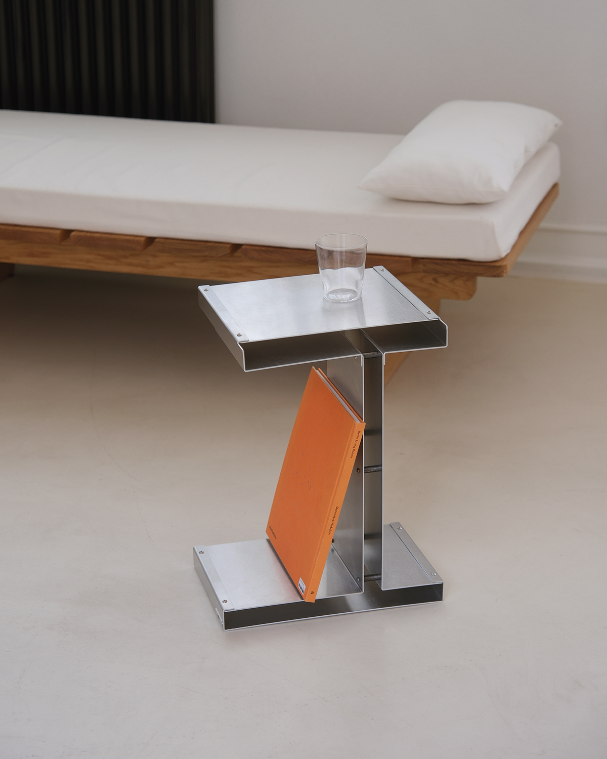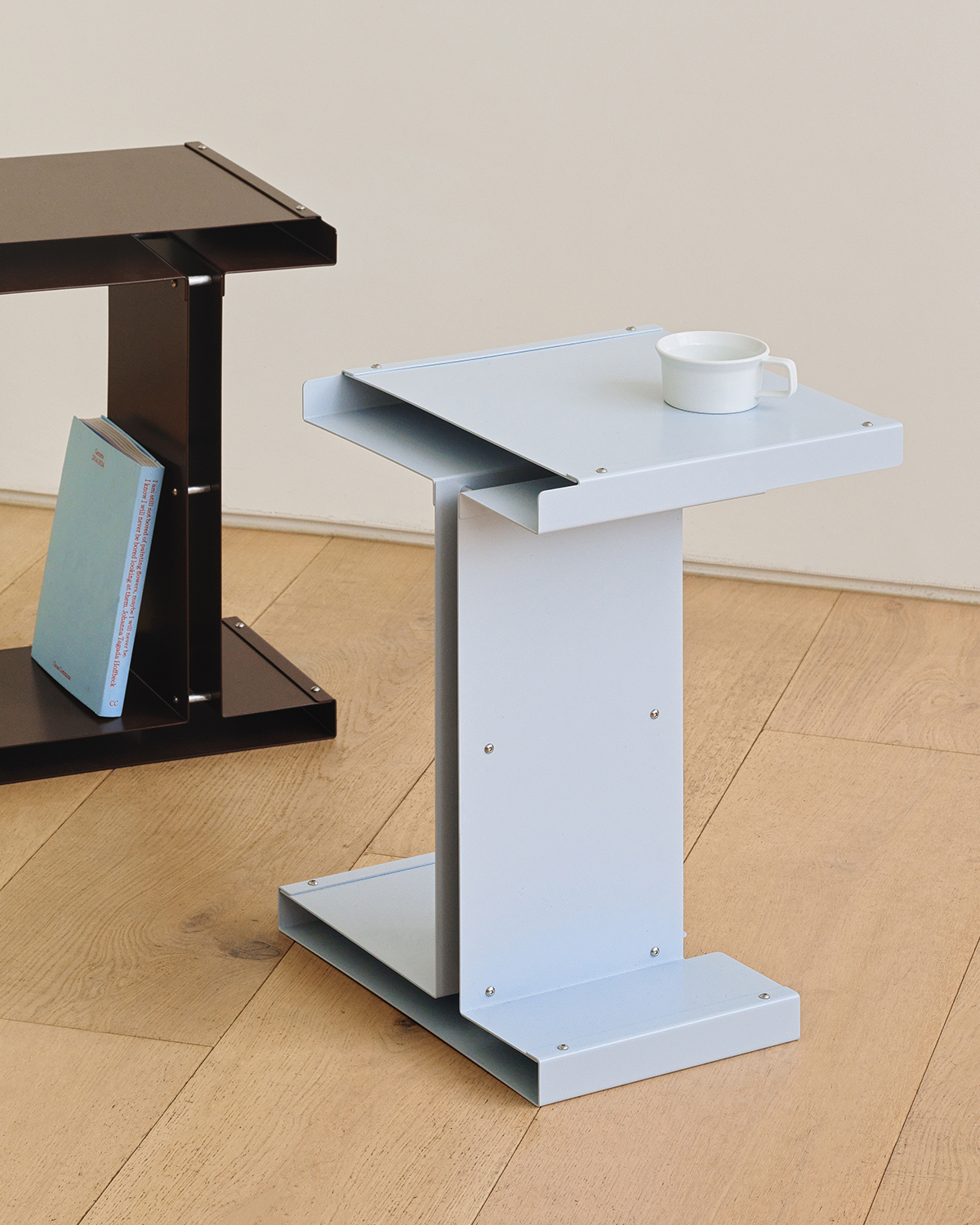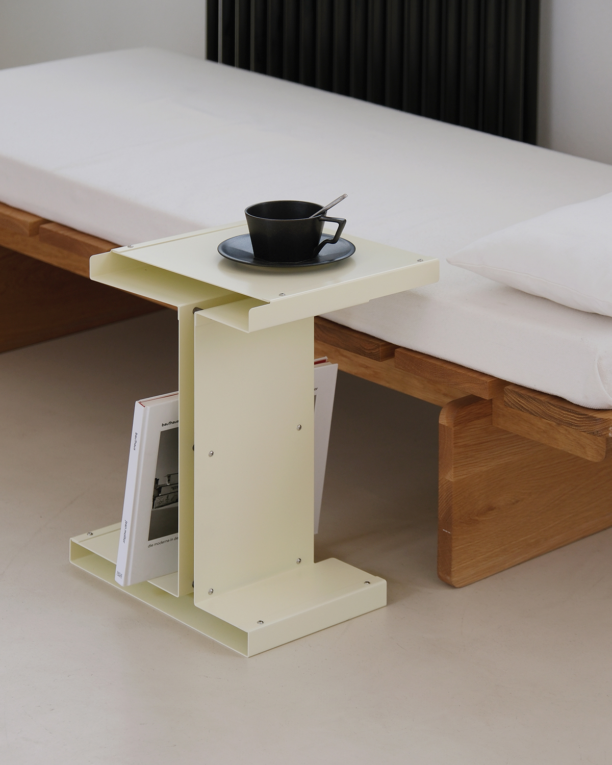 프레임의 구조가 곧 형태가 되는, 명료한 조형 언어를 지닌 사이드 테이블입니다.