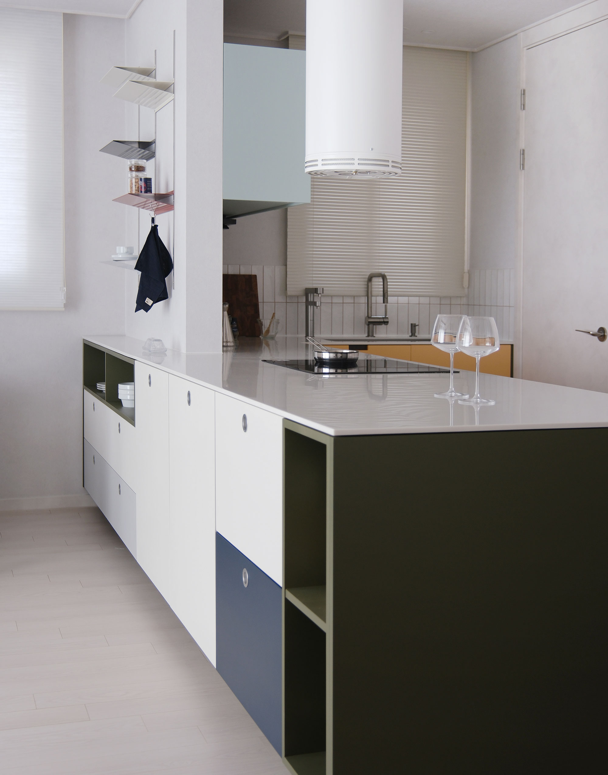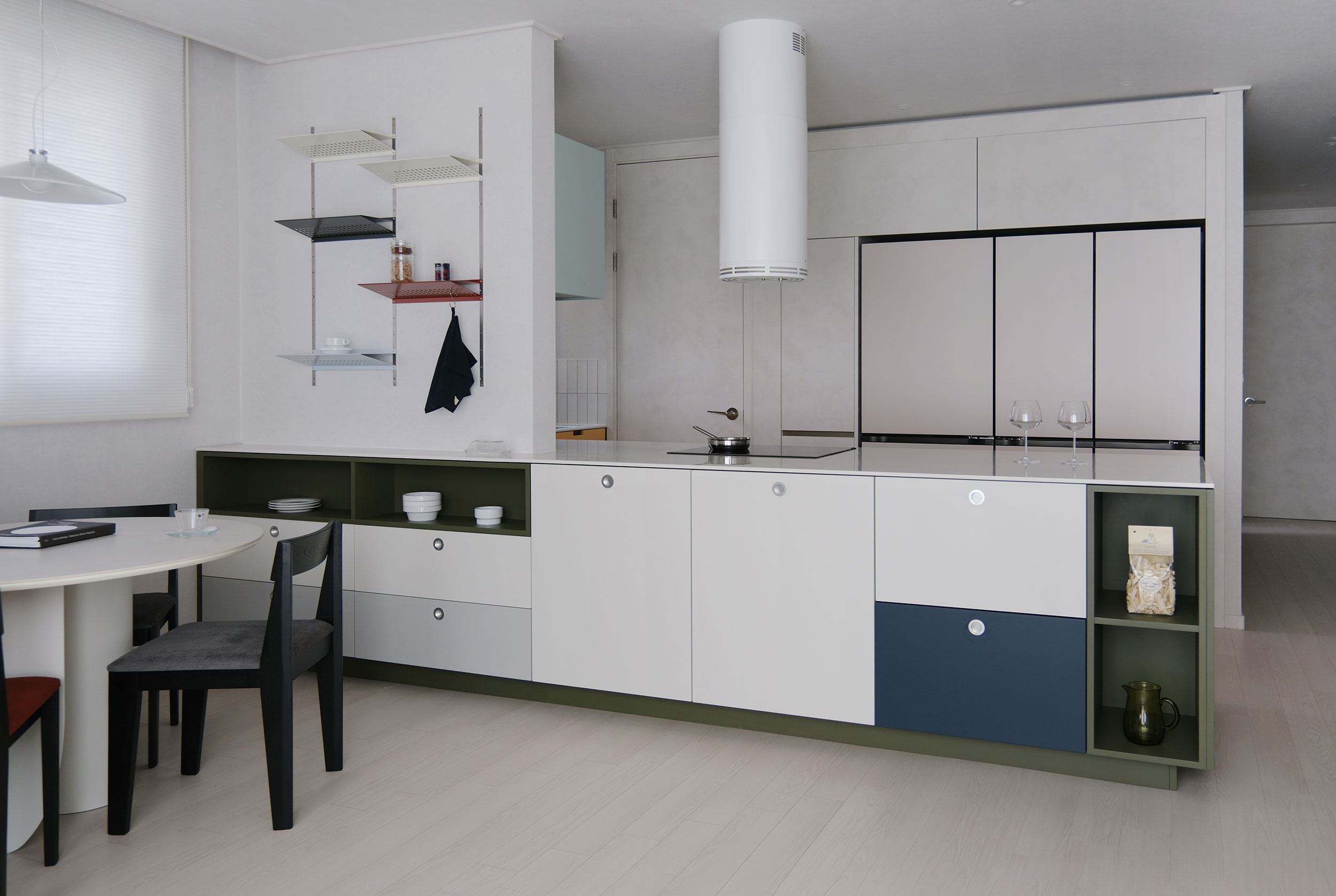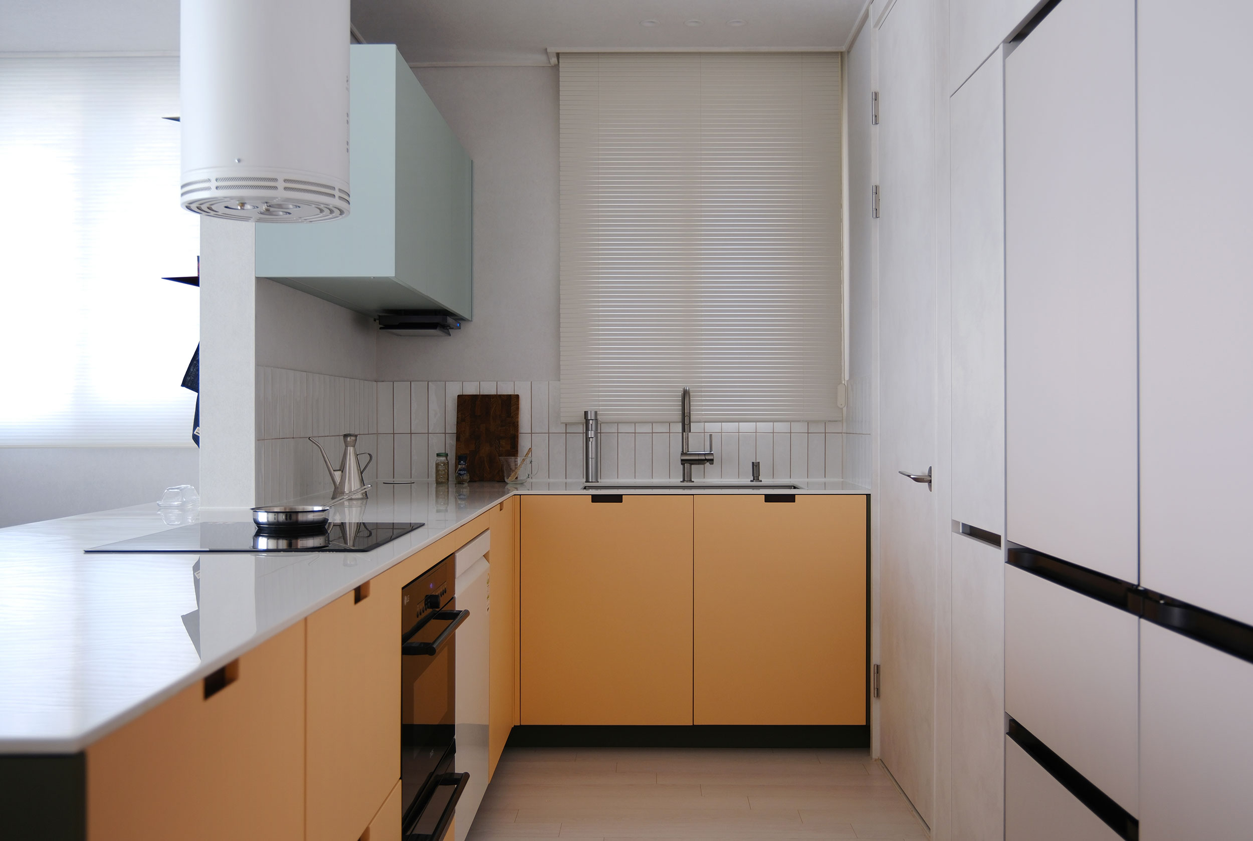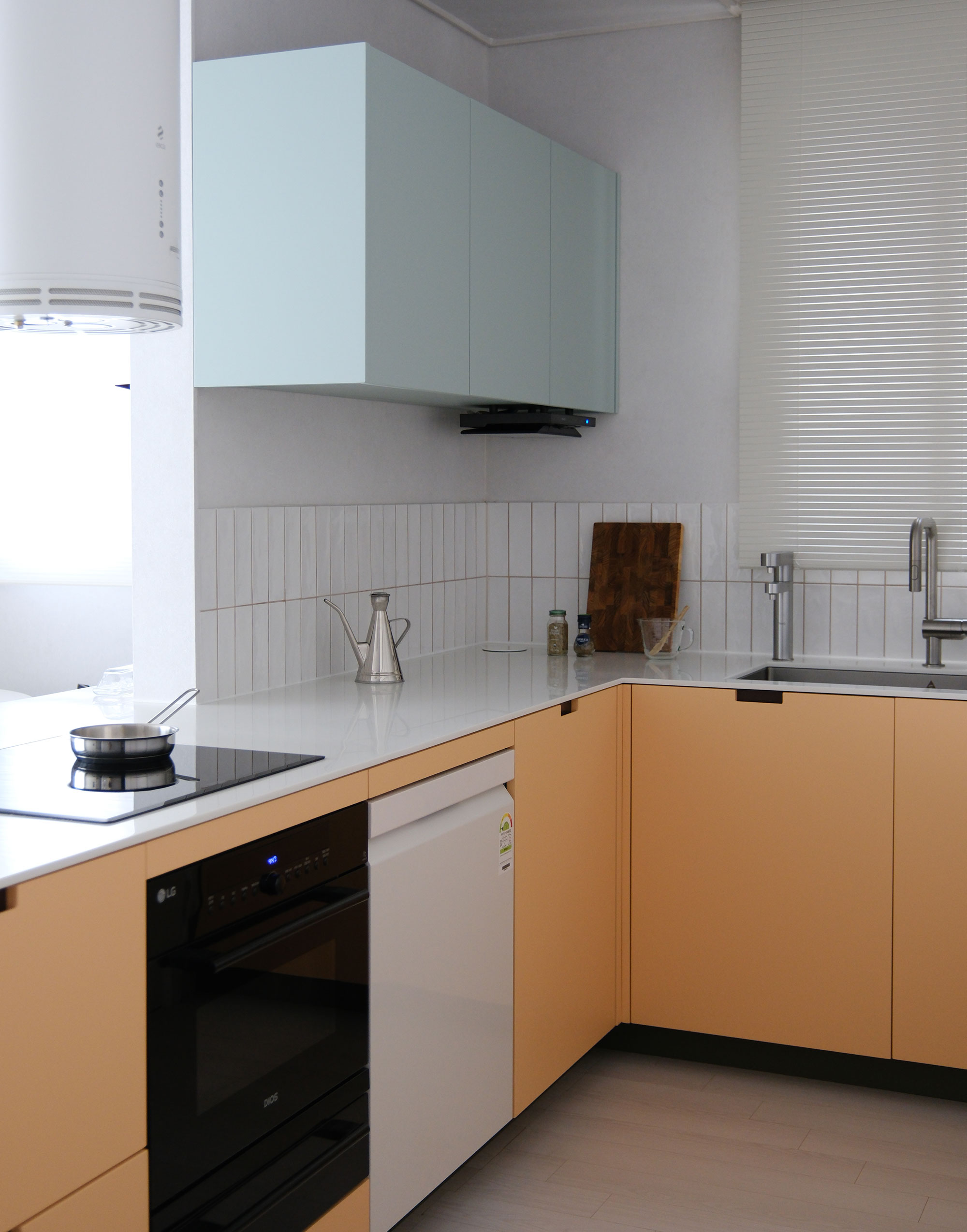 산뜻한 Apple mint 상부장이 조화를 이루며