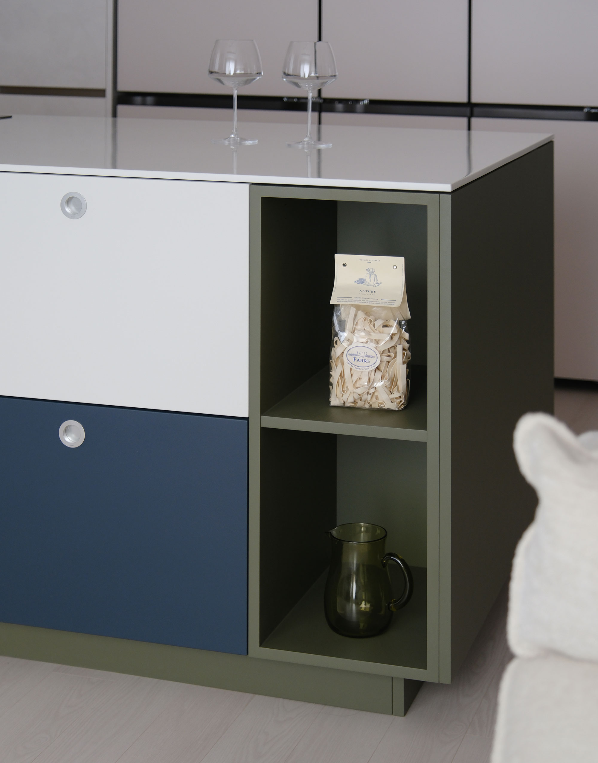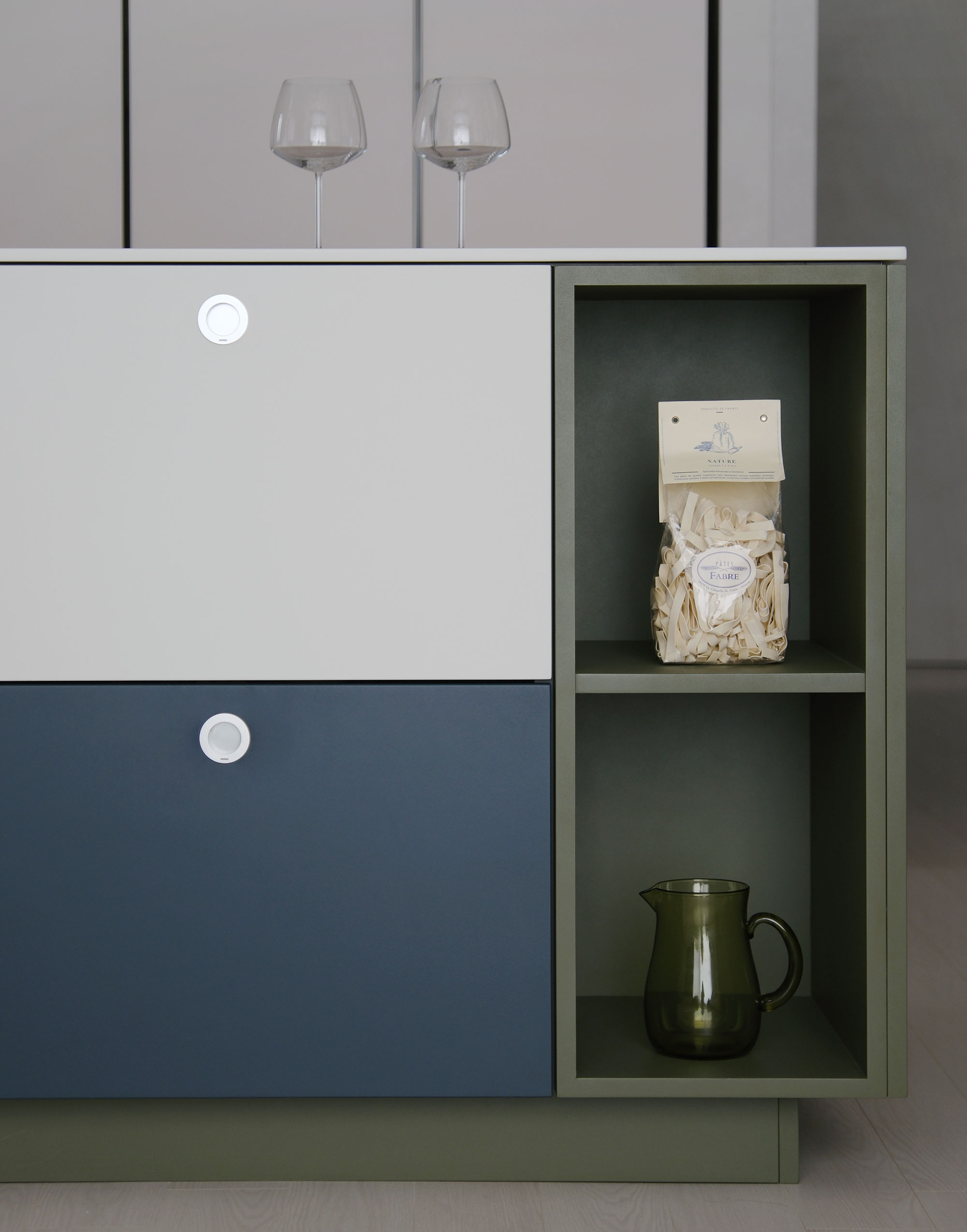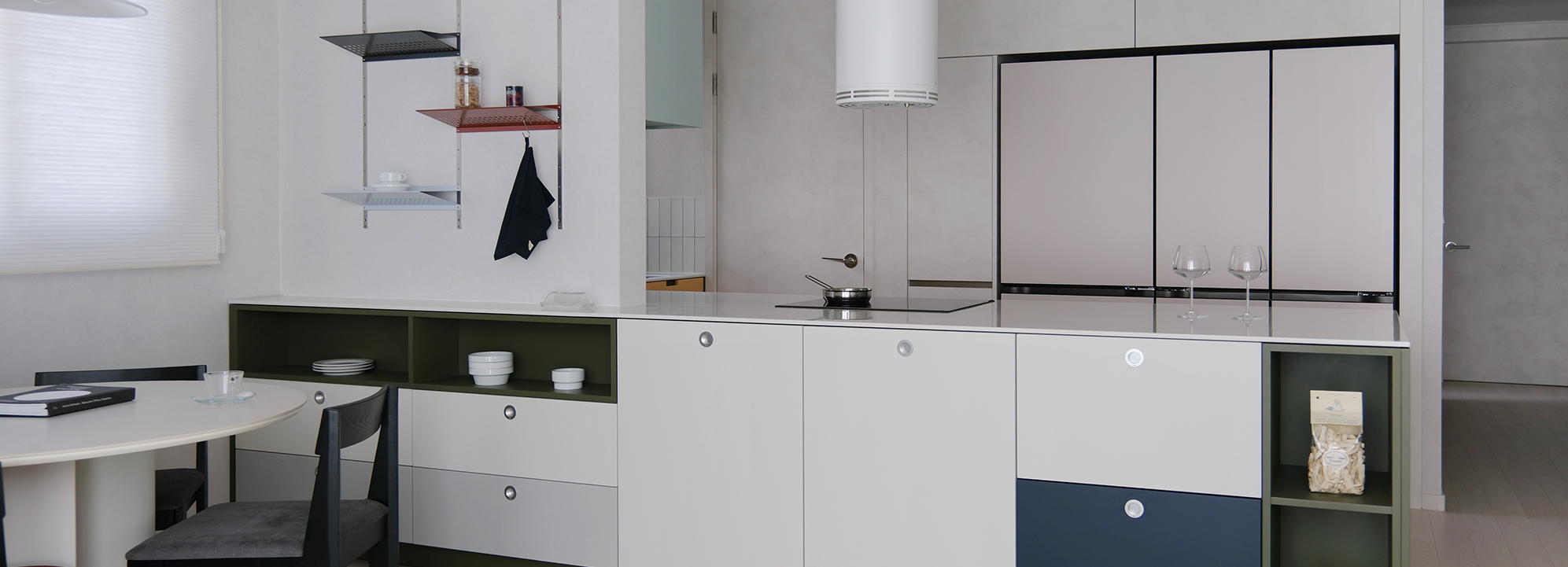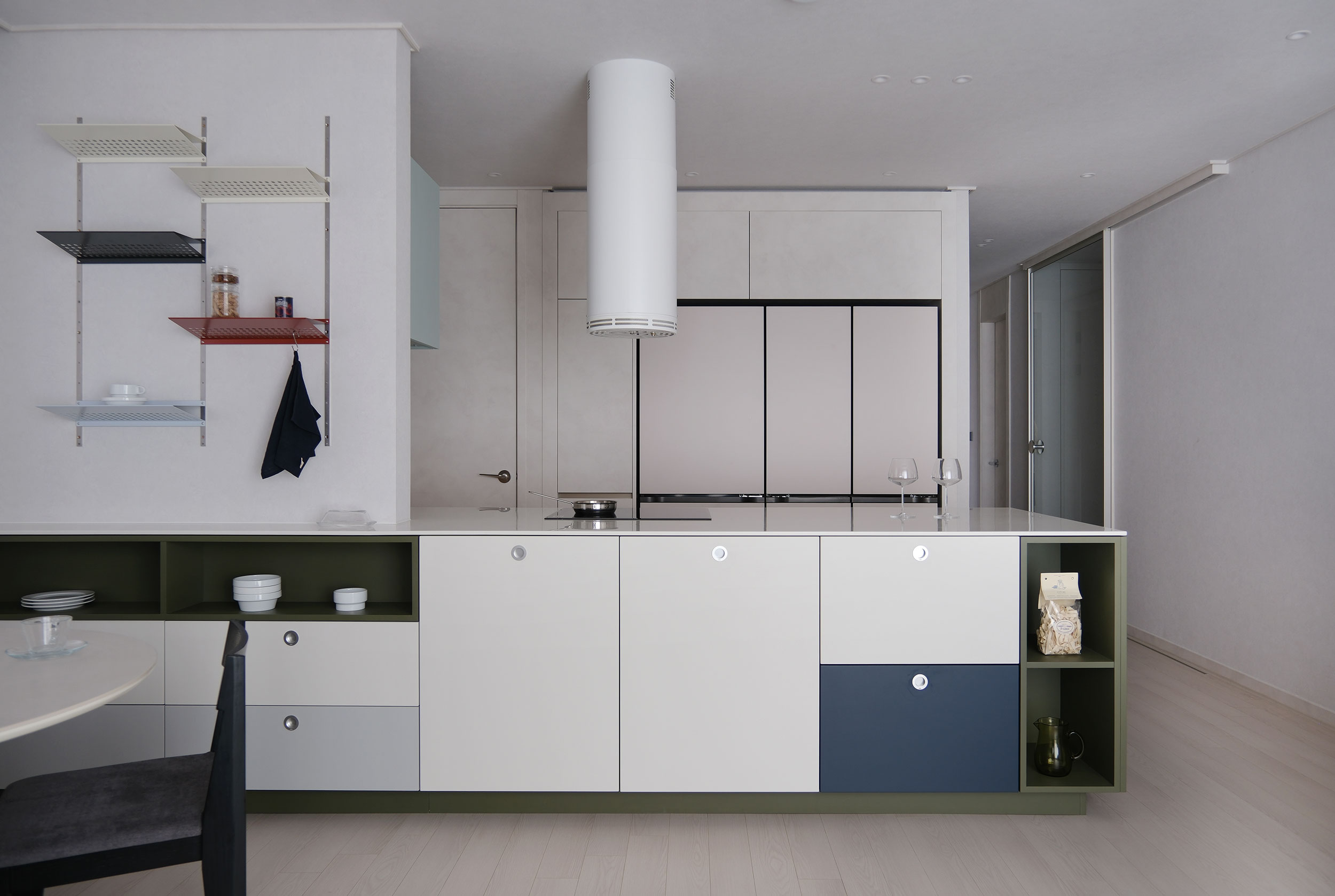 산뜻한 Apple mint 상부장이 조화를 이루며