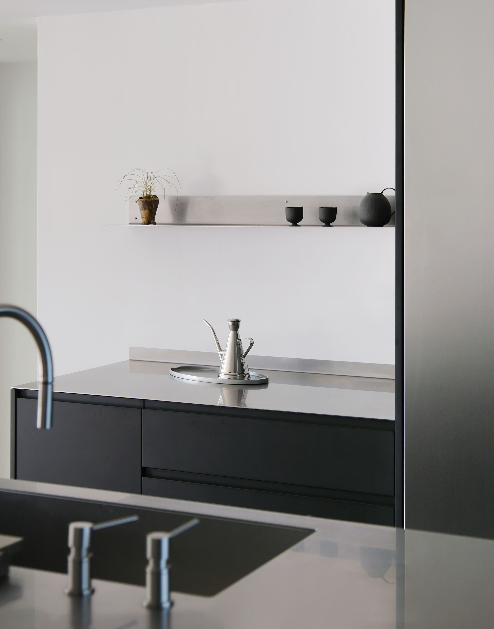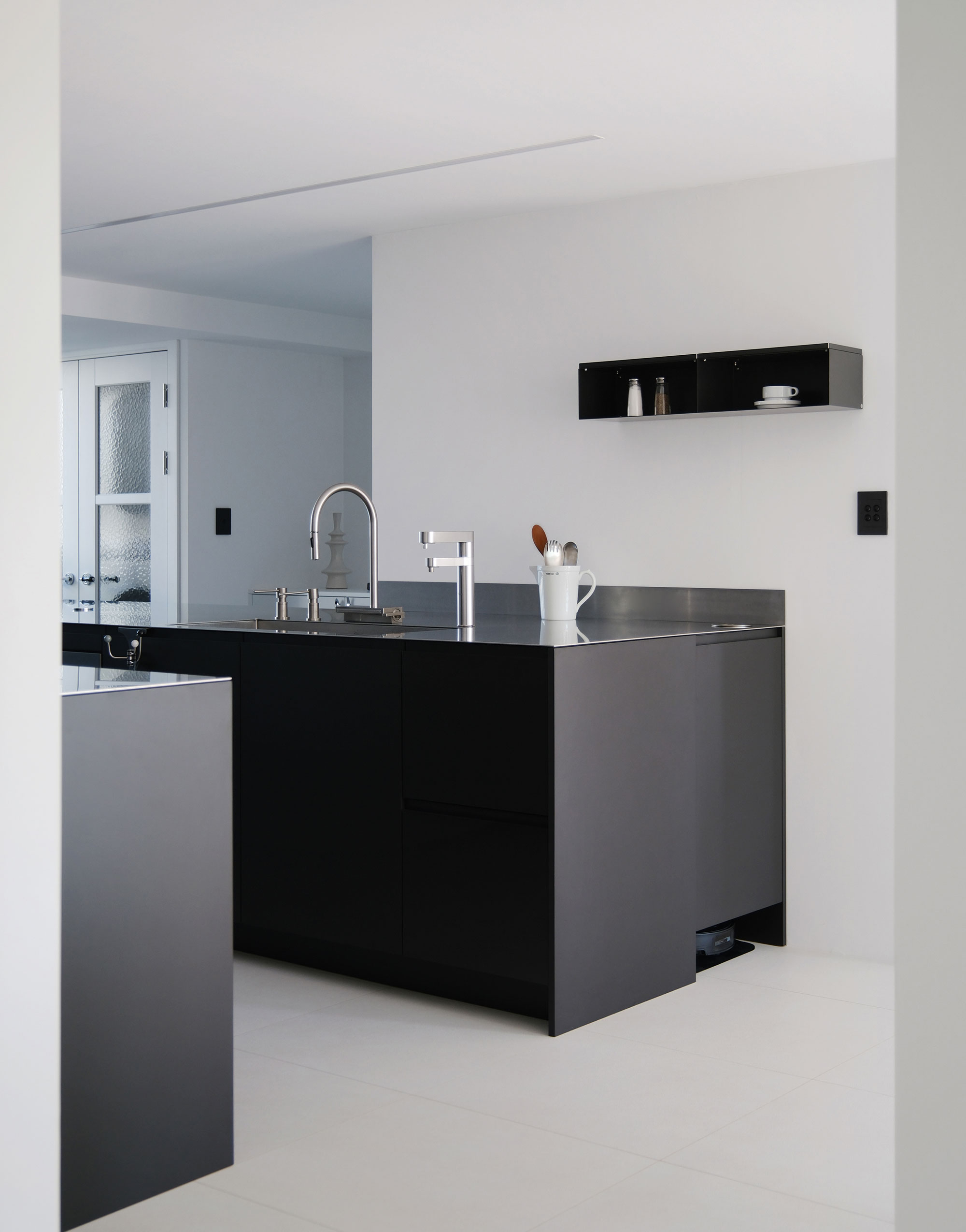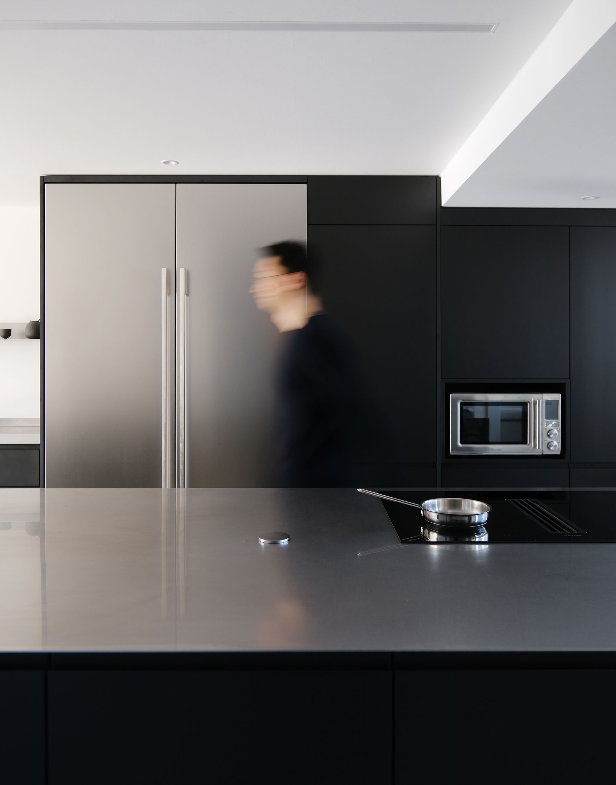 3.7m 아일랜드를 따라 길게 뻗은 스테인리스 상판과