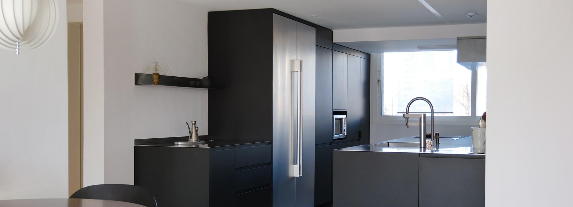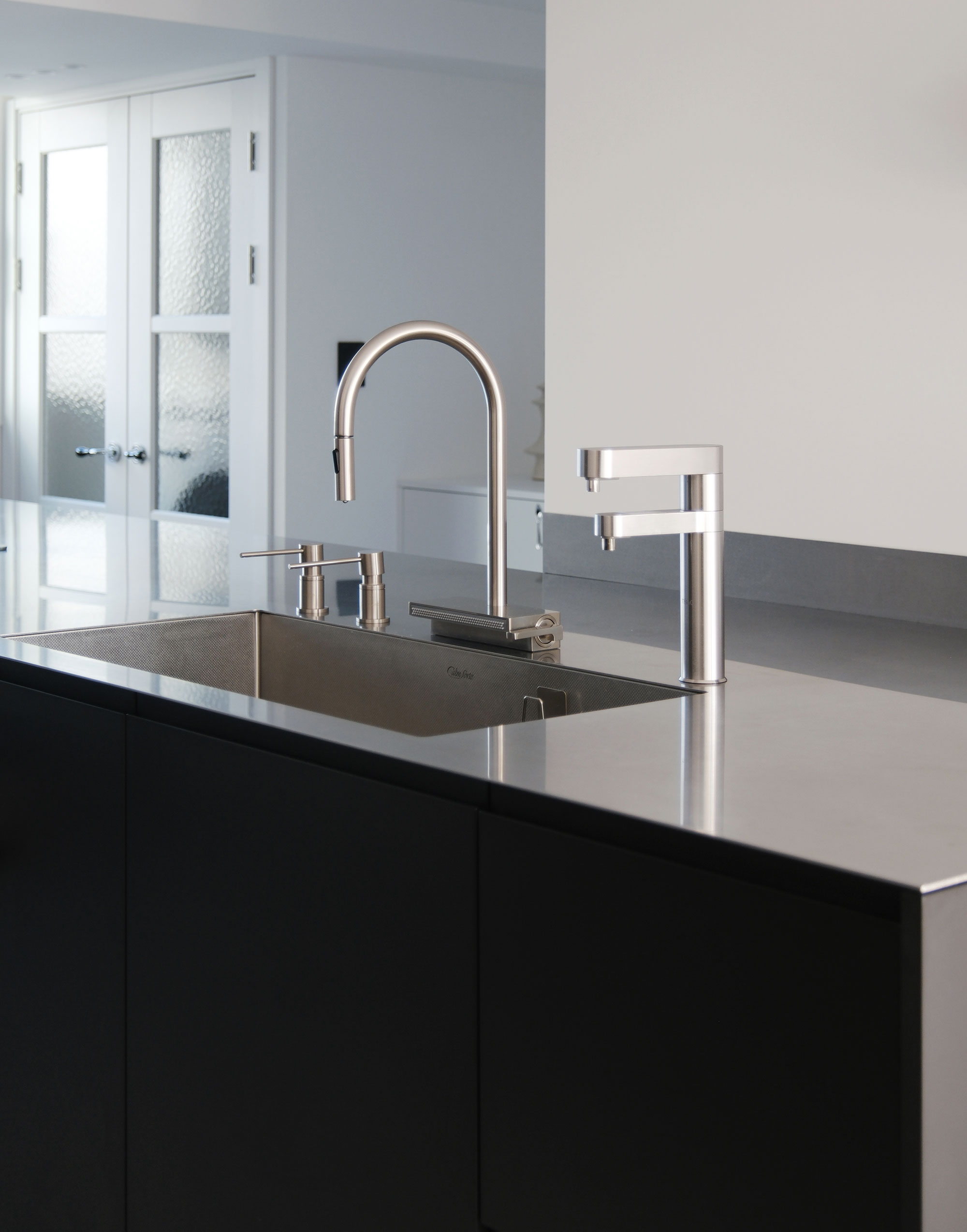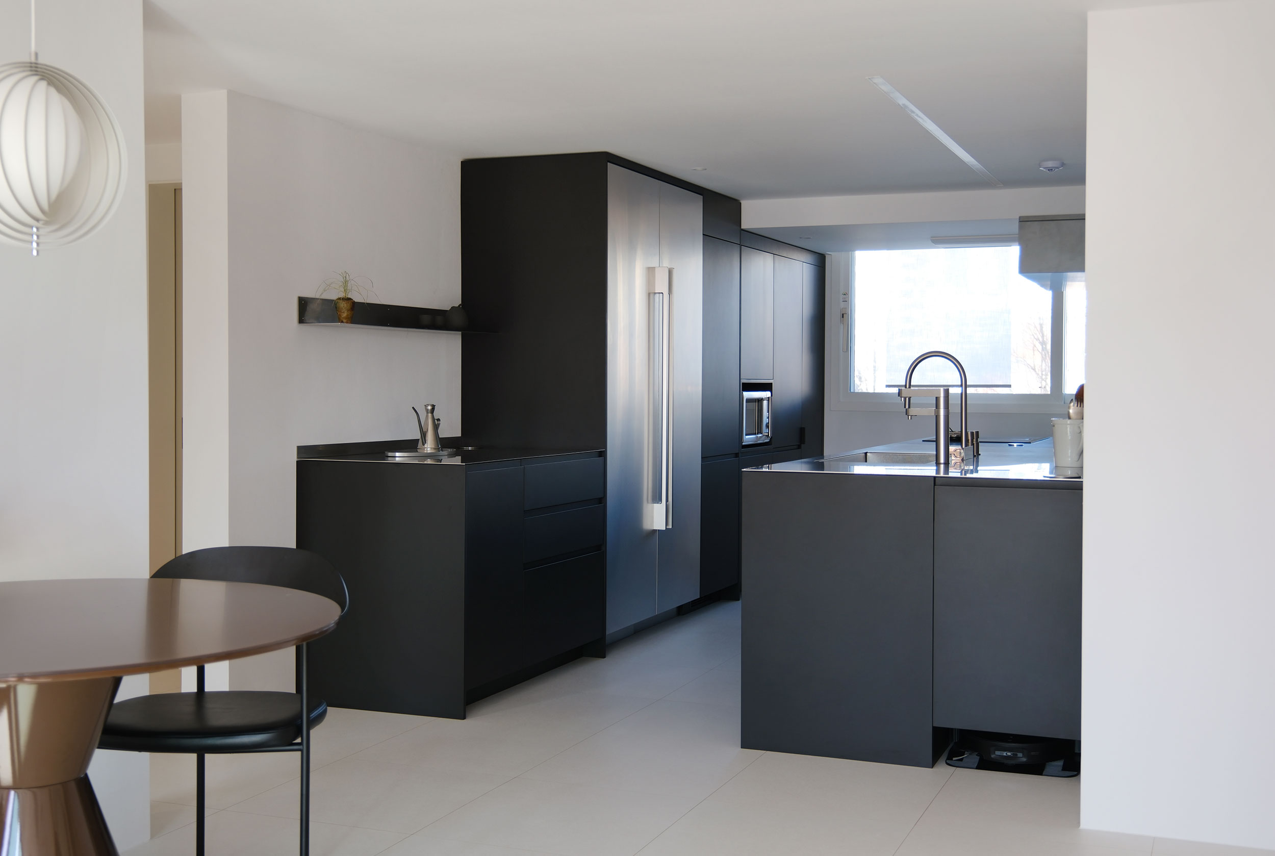 3.7m 아일랜드를 따라 길게 뻗은 스테인리스 상판과