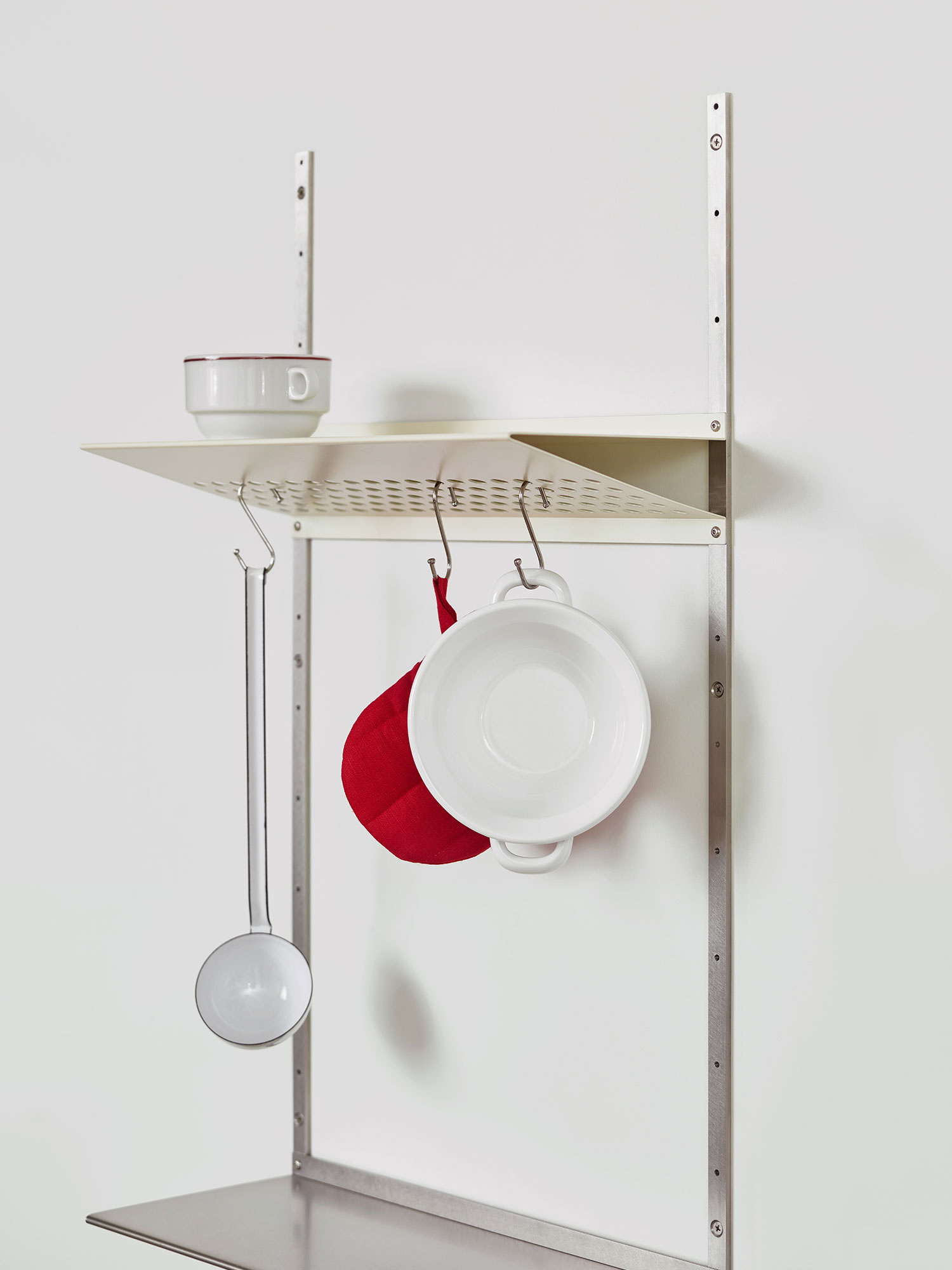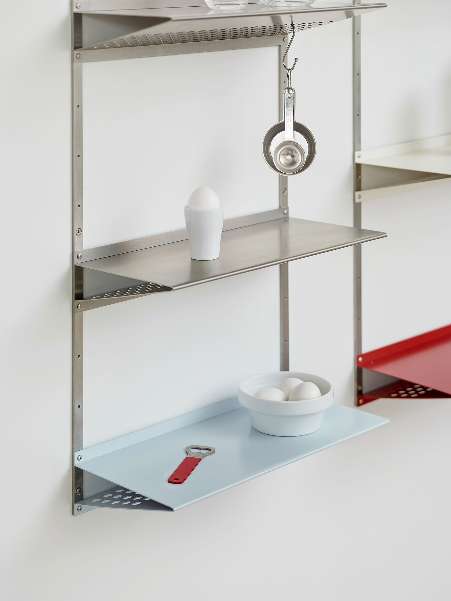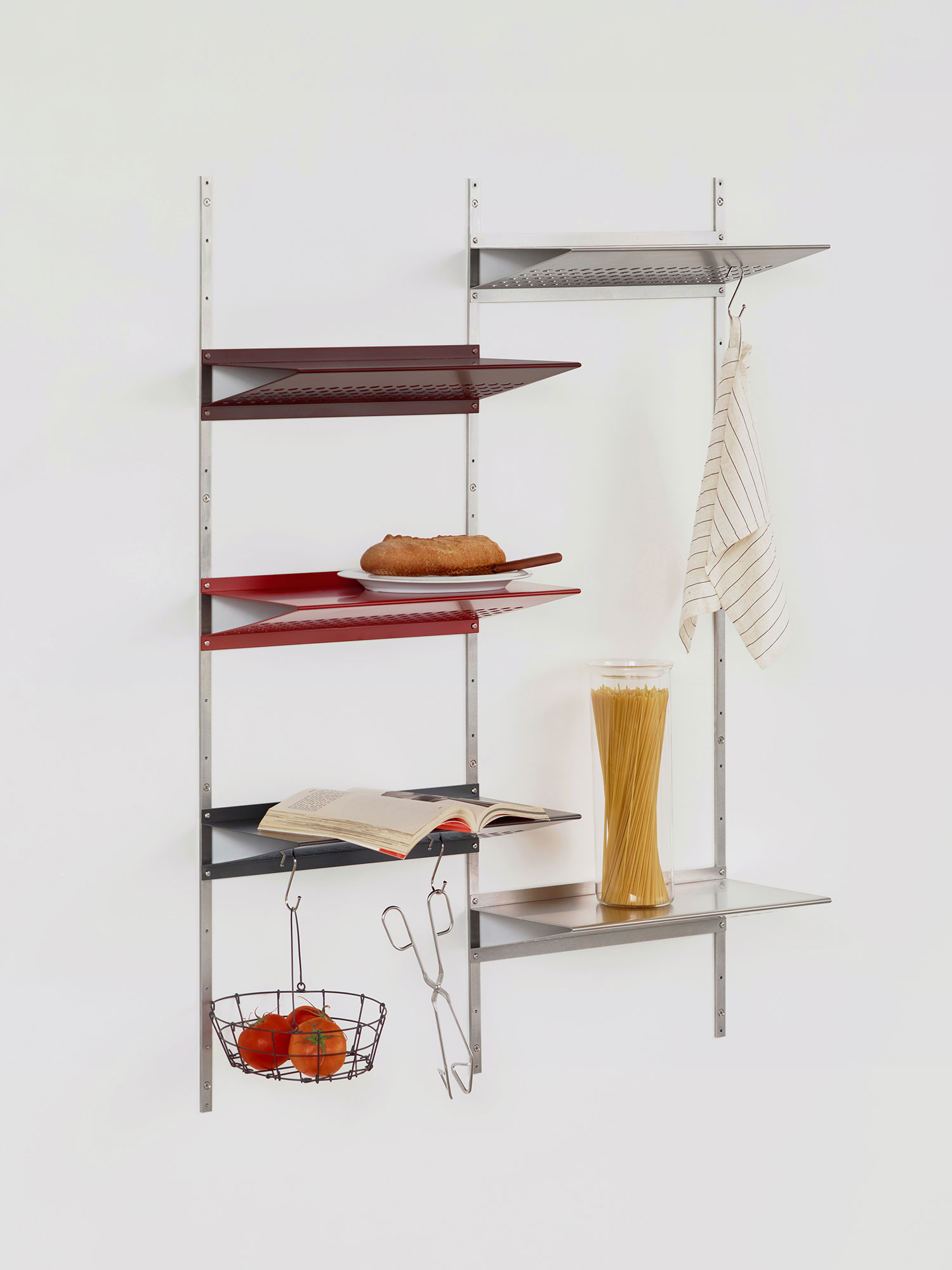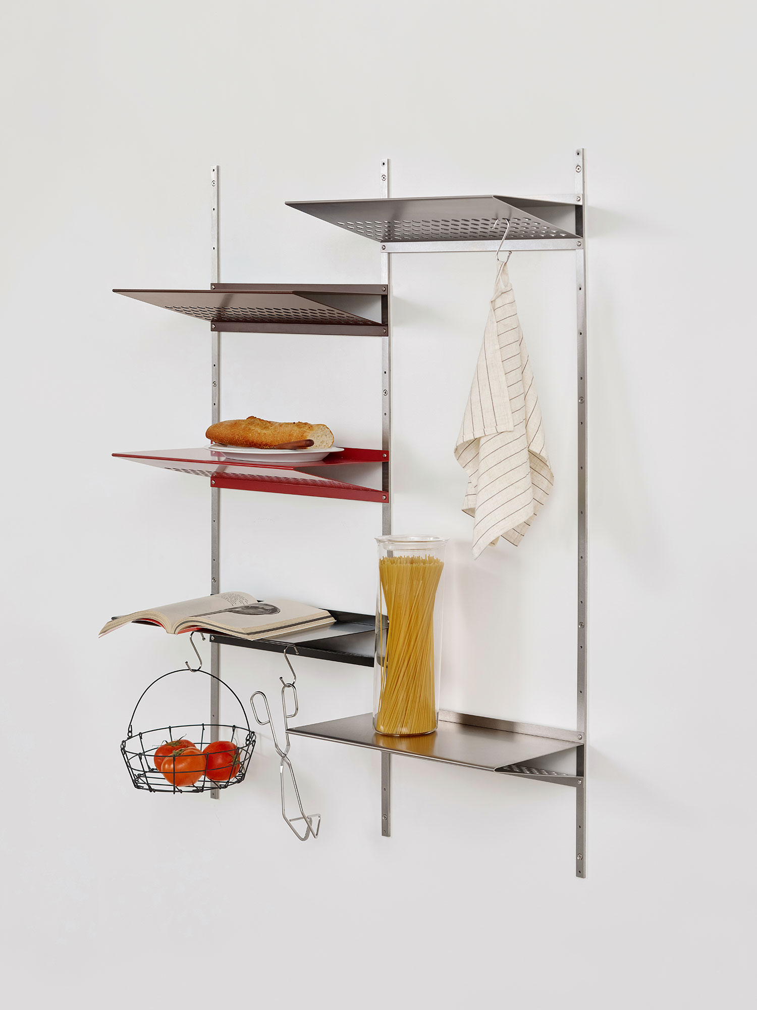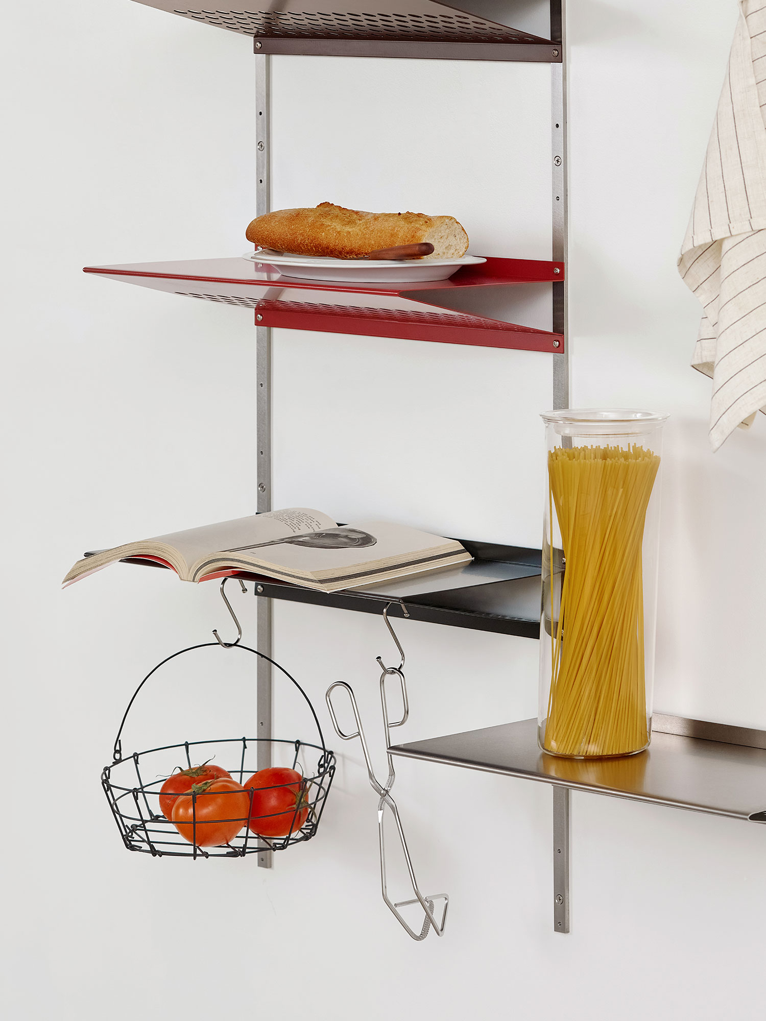 선반에 여러 모양의 키친웨어를 걸어나 계절의 식재료를 얹어