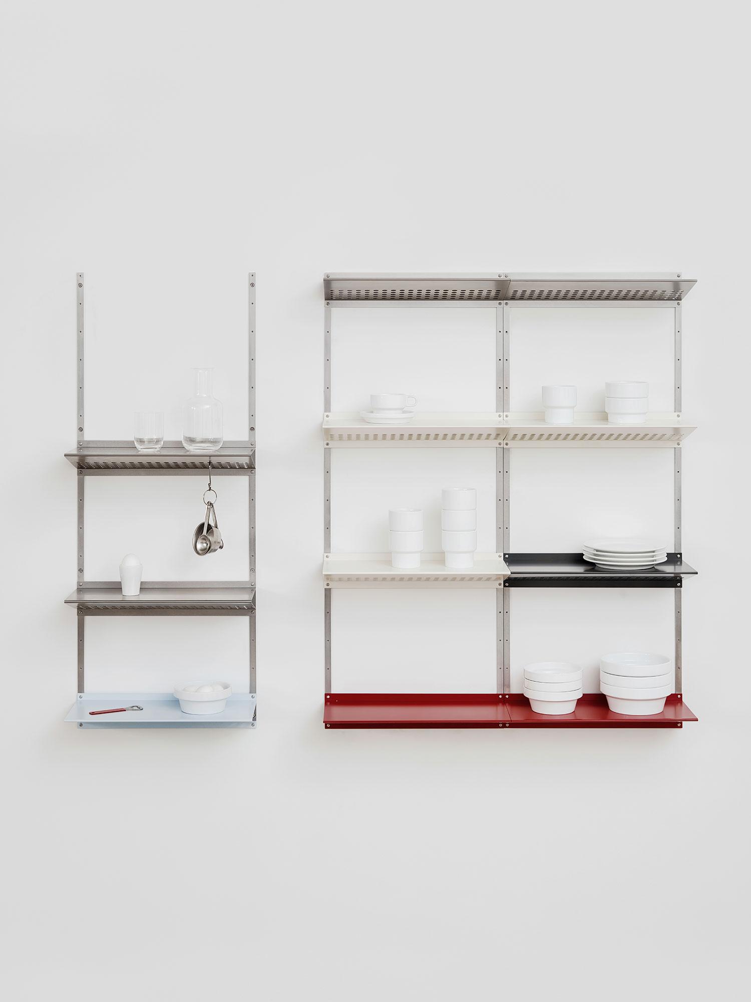 정체성을 직관적으로 시각화하는 조형 언어를 가진 벽 선반입니다.