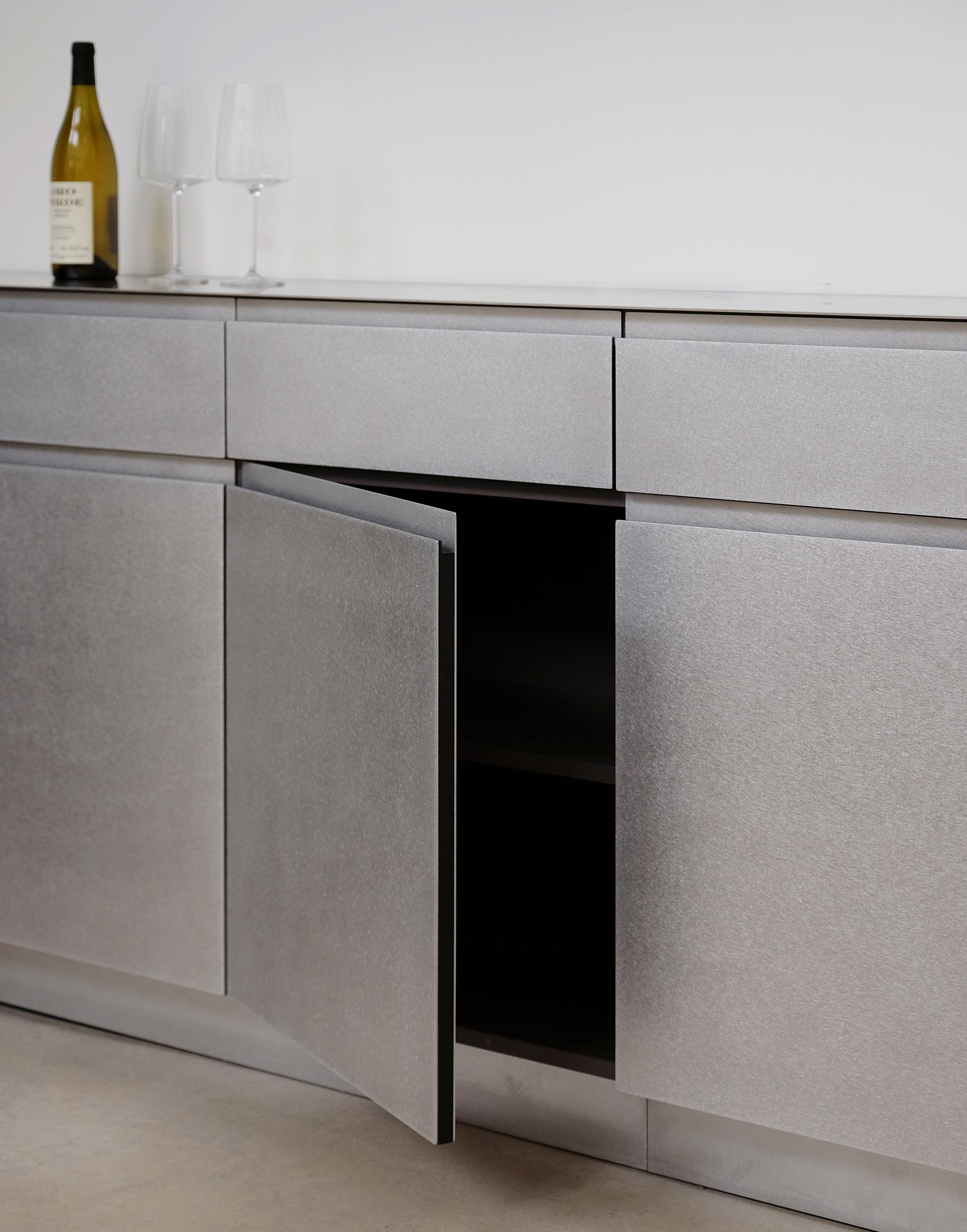 조형감있게 배치된 5M 메탈 아일랜드 키친