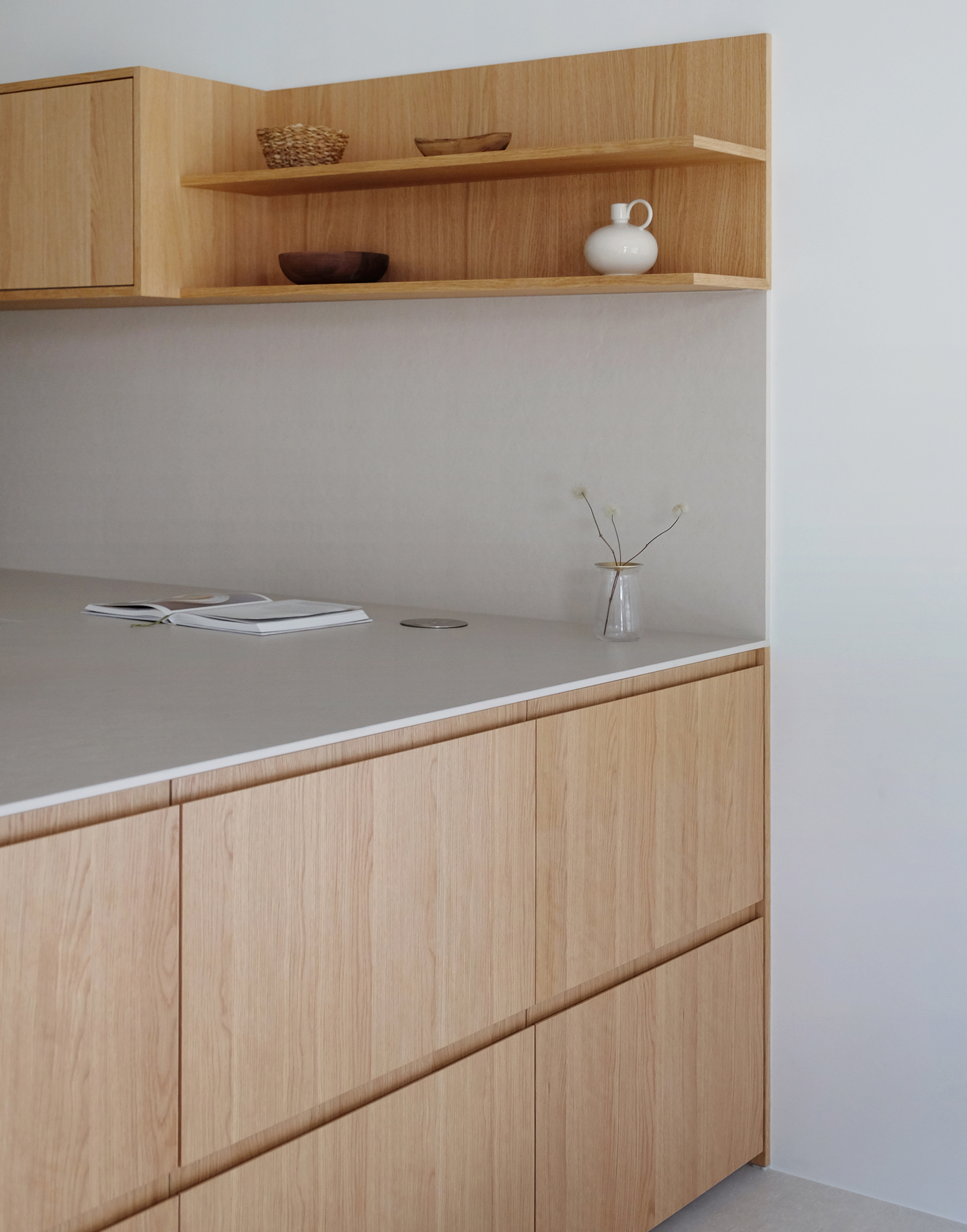 내추럴 화이트 오크우드와 베이지 세라믹 상판,