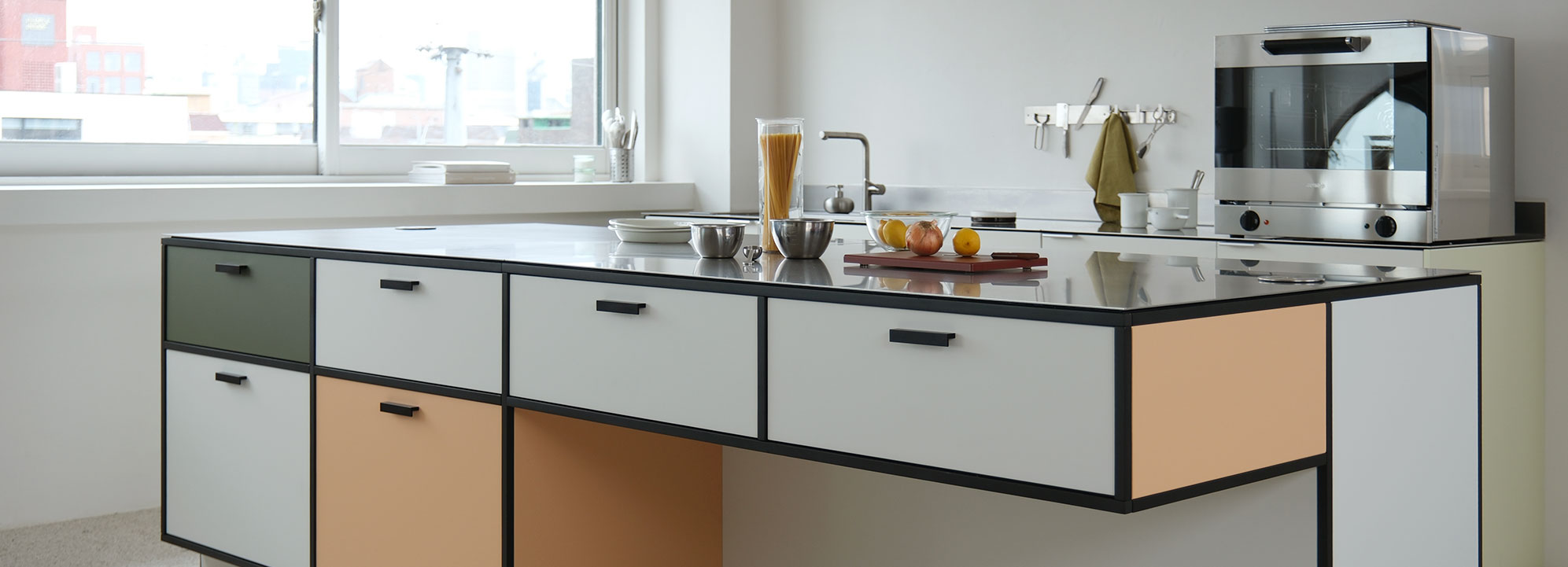두 가지 라인을 믹스매치한 특별한 컬러 키친,
