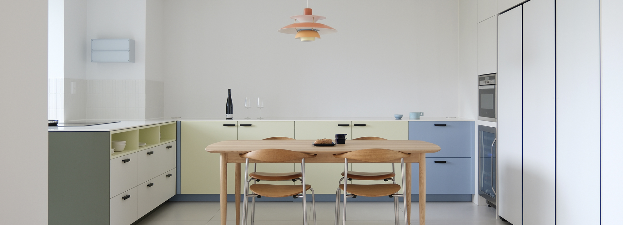 특히 다이닝 공간에서는 경쾌한 컬러가 분위기를 밝히며,