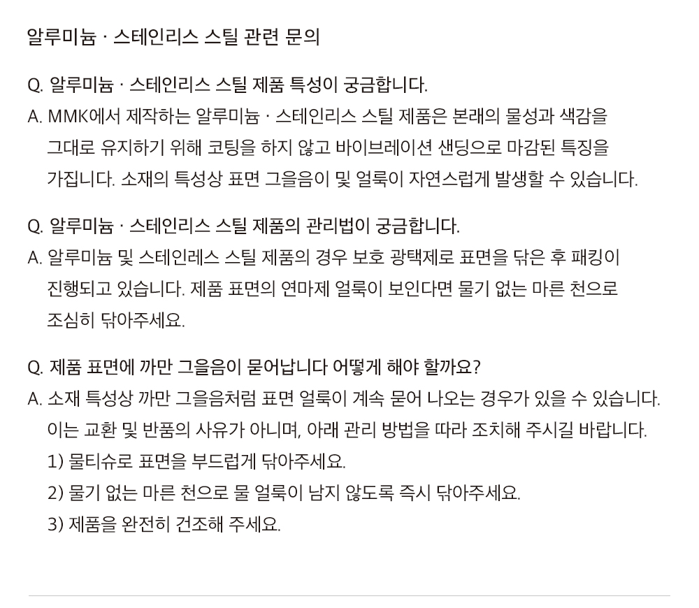 Buy it now Body 옵션 선택 Stainless steel Aluminum 배송 옵션 선택 국내배송 제주 및 도서산간 MMK 방문 수령 총 상품 금액 0 원 Basket Buy it now