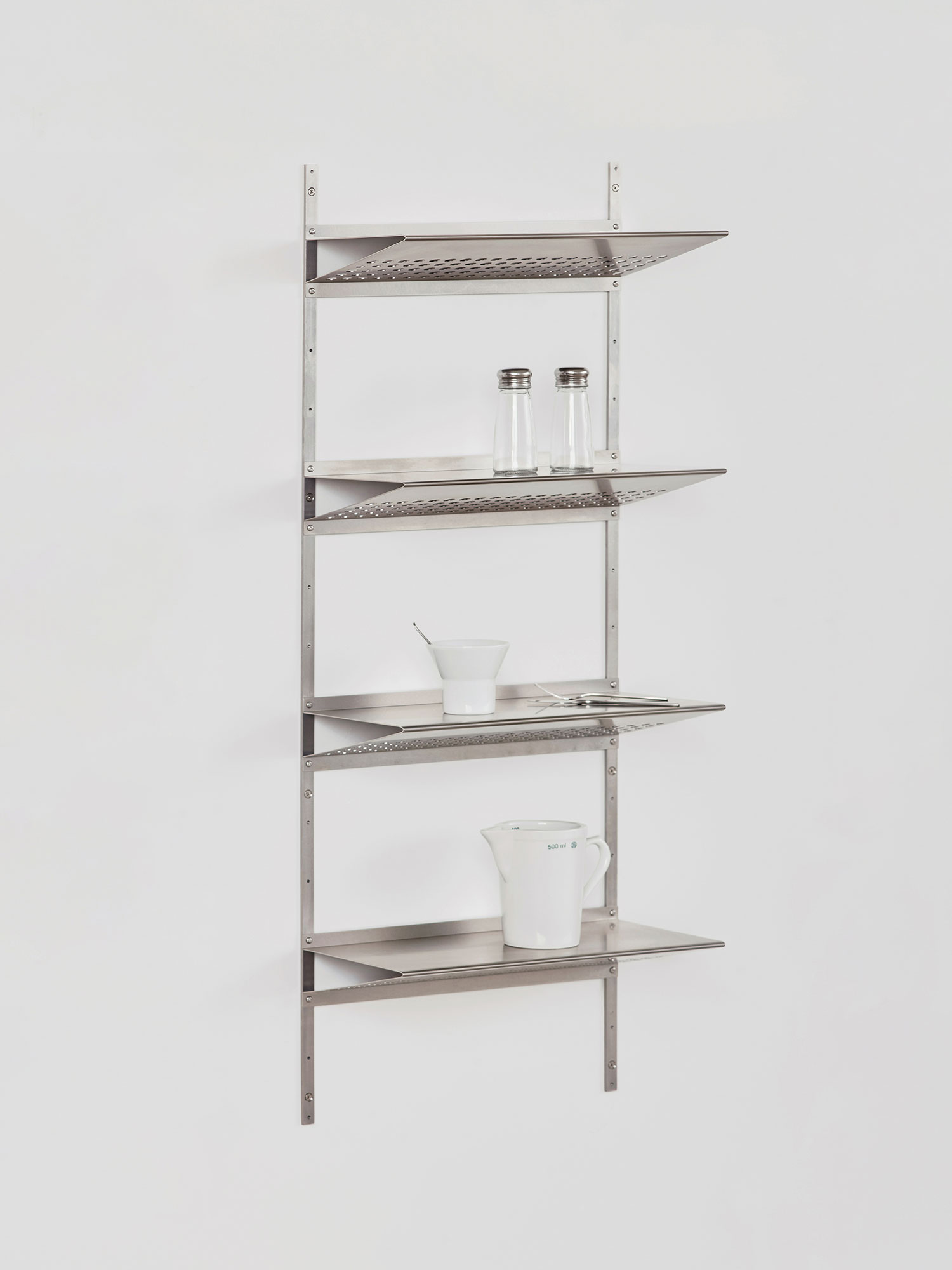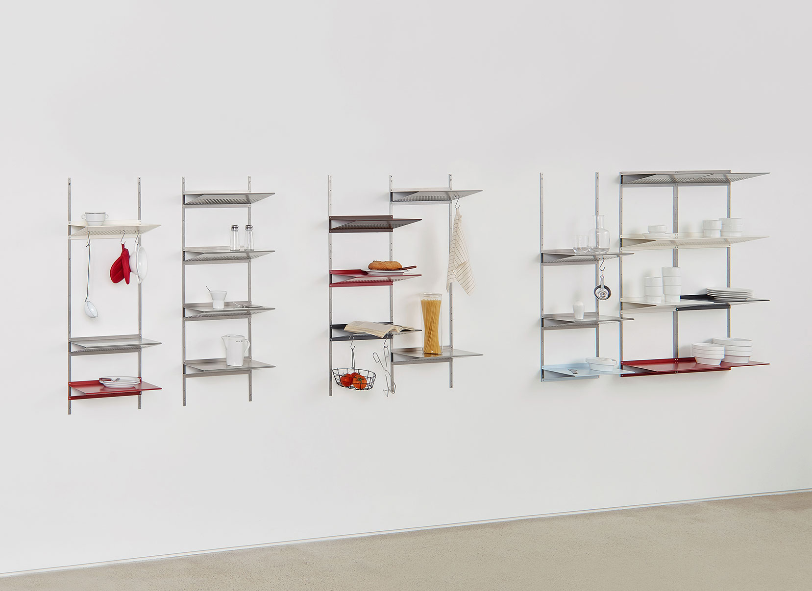 정체성을 직관적으로 시각화하는 조형 언어를 가진 벽 선반입니다.