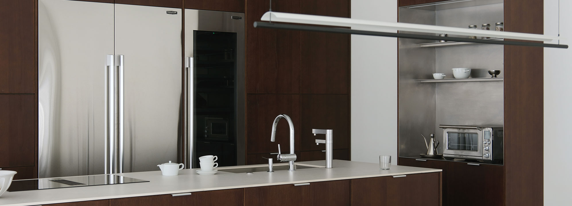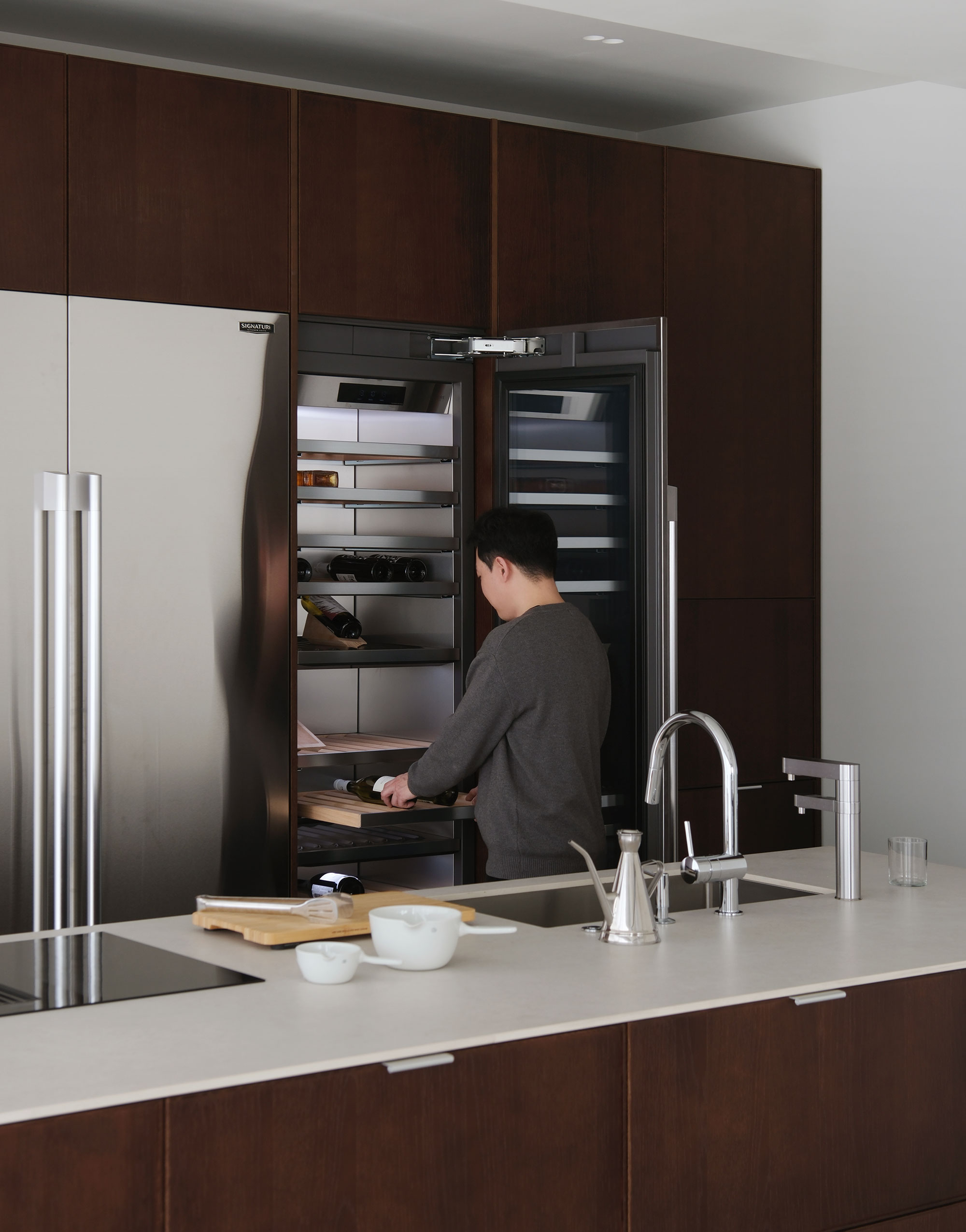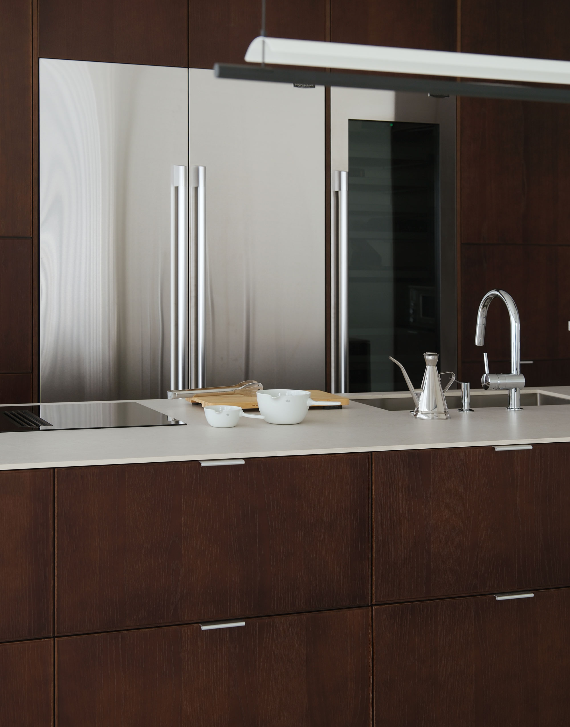 가지런한 곧은 힘이 느껴지는 키친입니다.