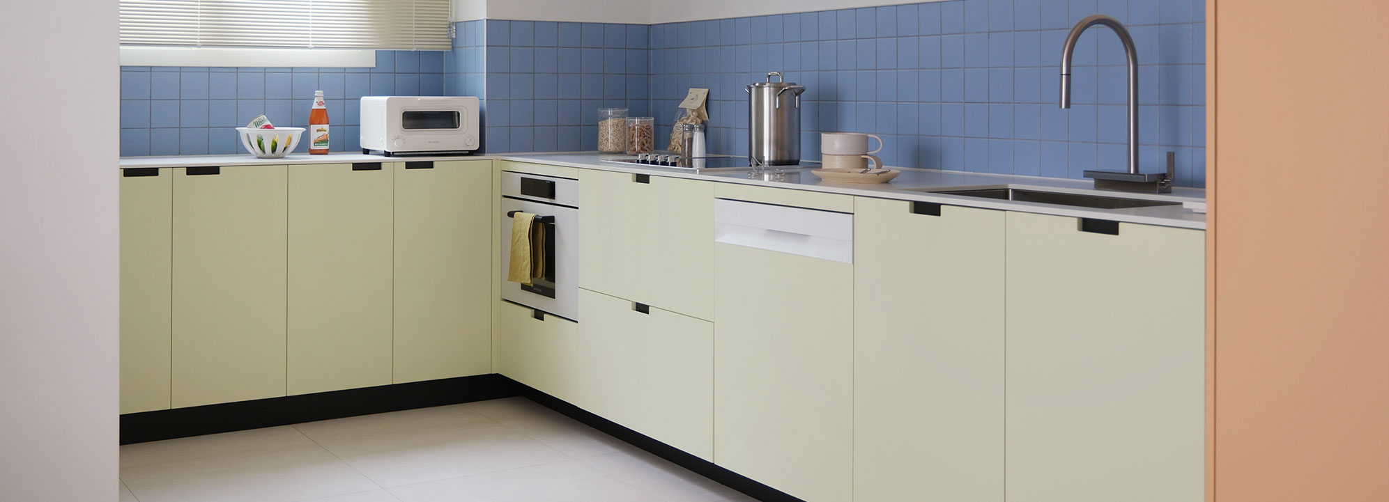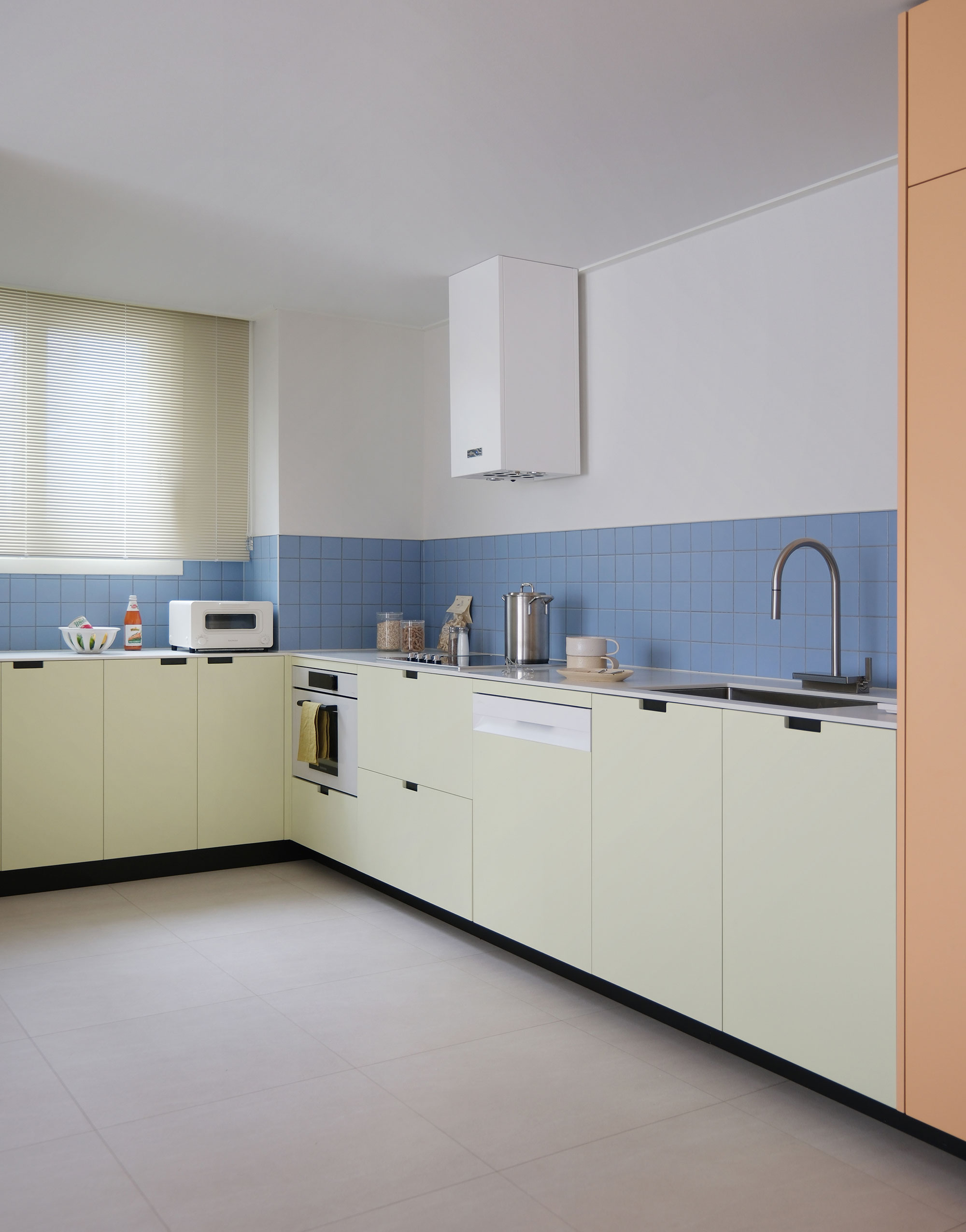 다채로운 컬러가 돋보이는 에센셜 컬러 키친입니다.