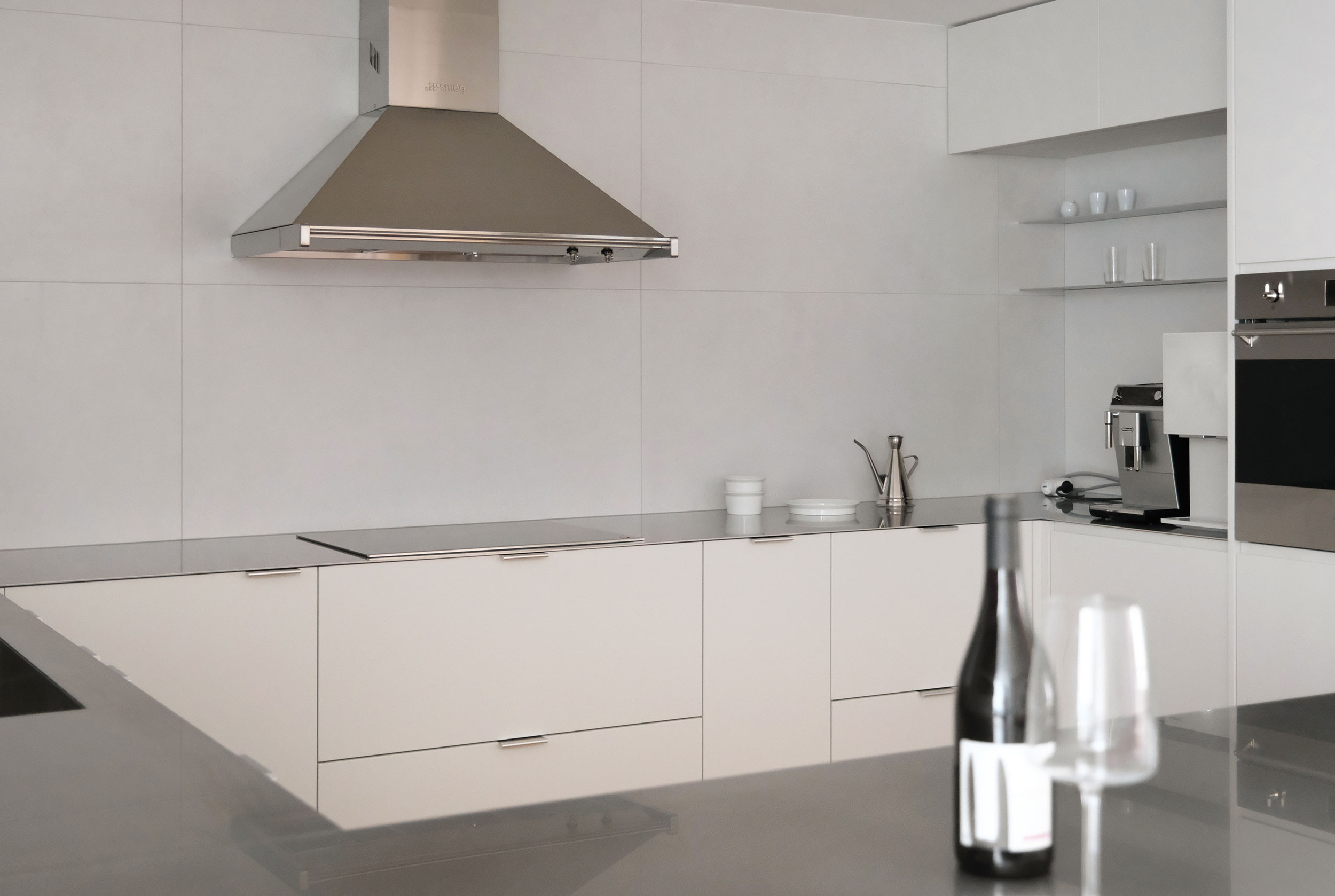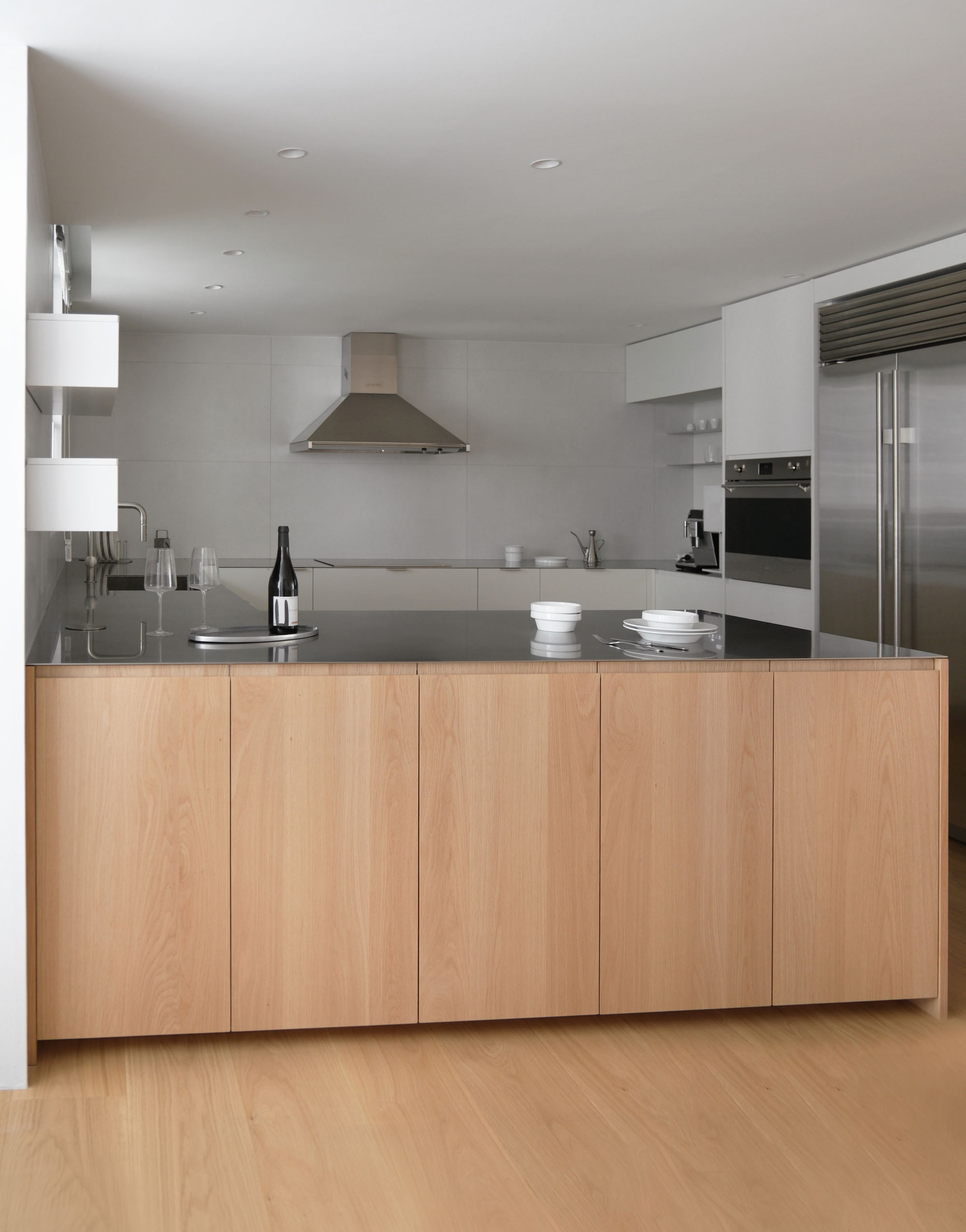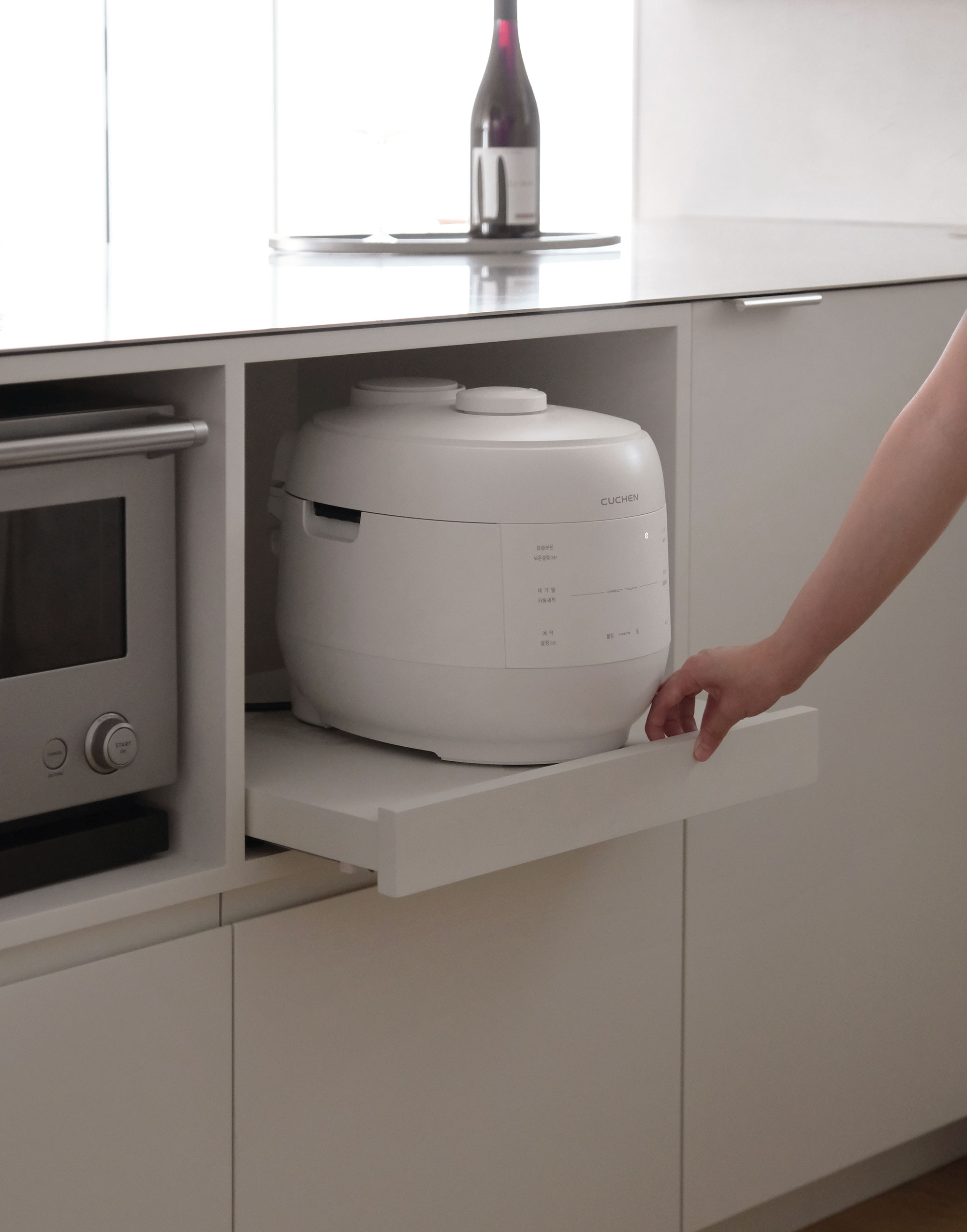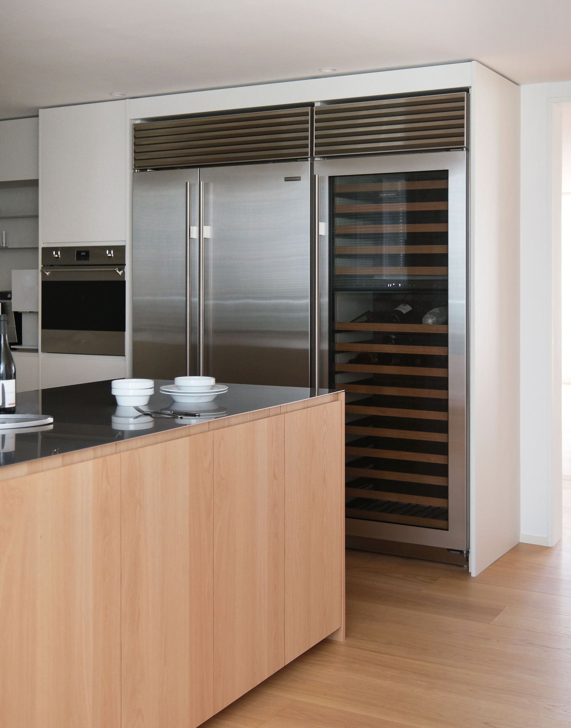 안정감 있게 구성합니다. 키큰장을 따라 미니바와 오븐, 와인셀러,