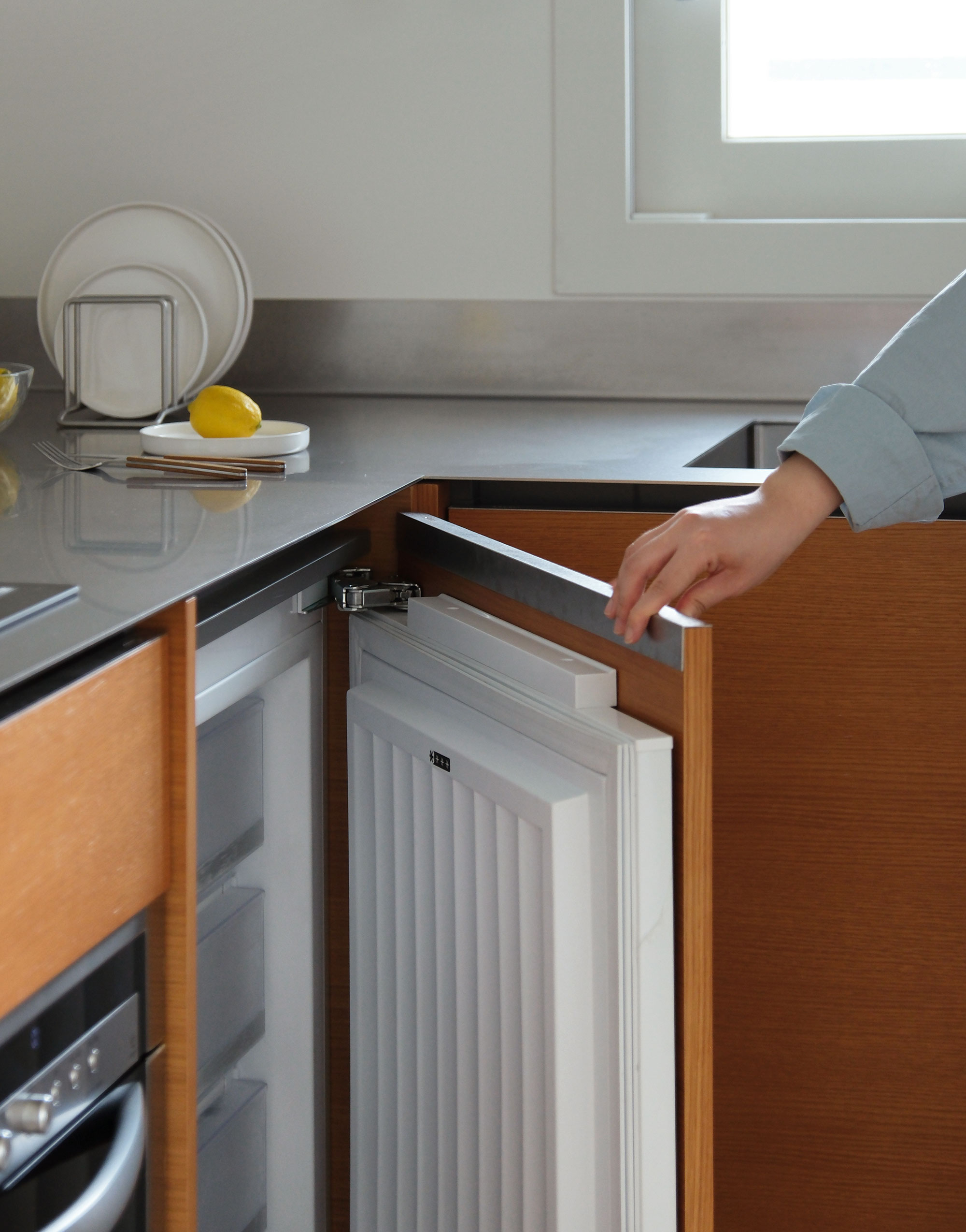 우측은 요리와 세척 등 본질적인 기능과 동선에 집중하여