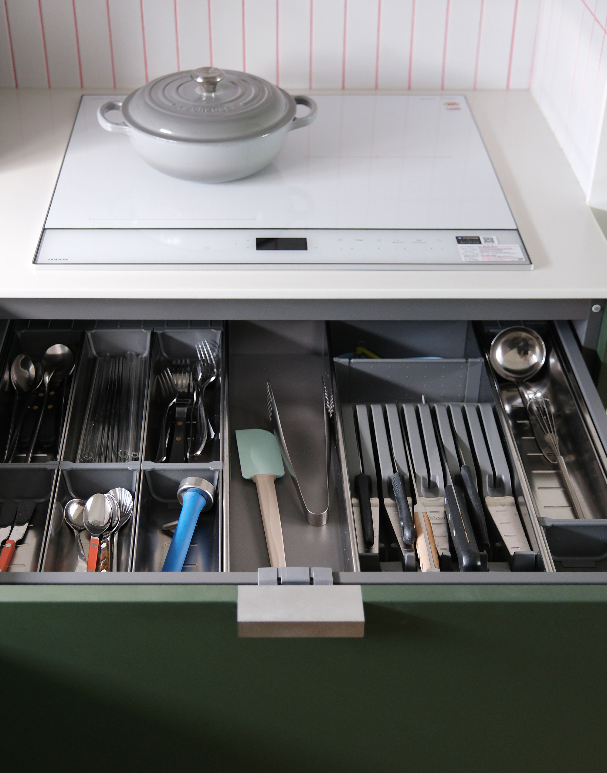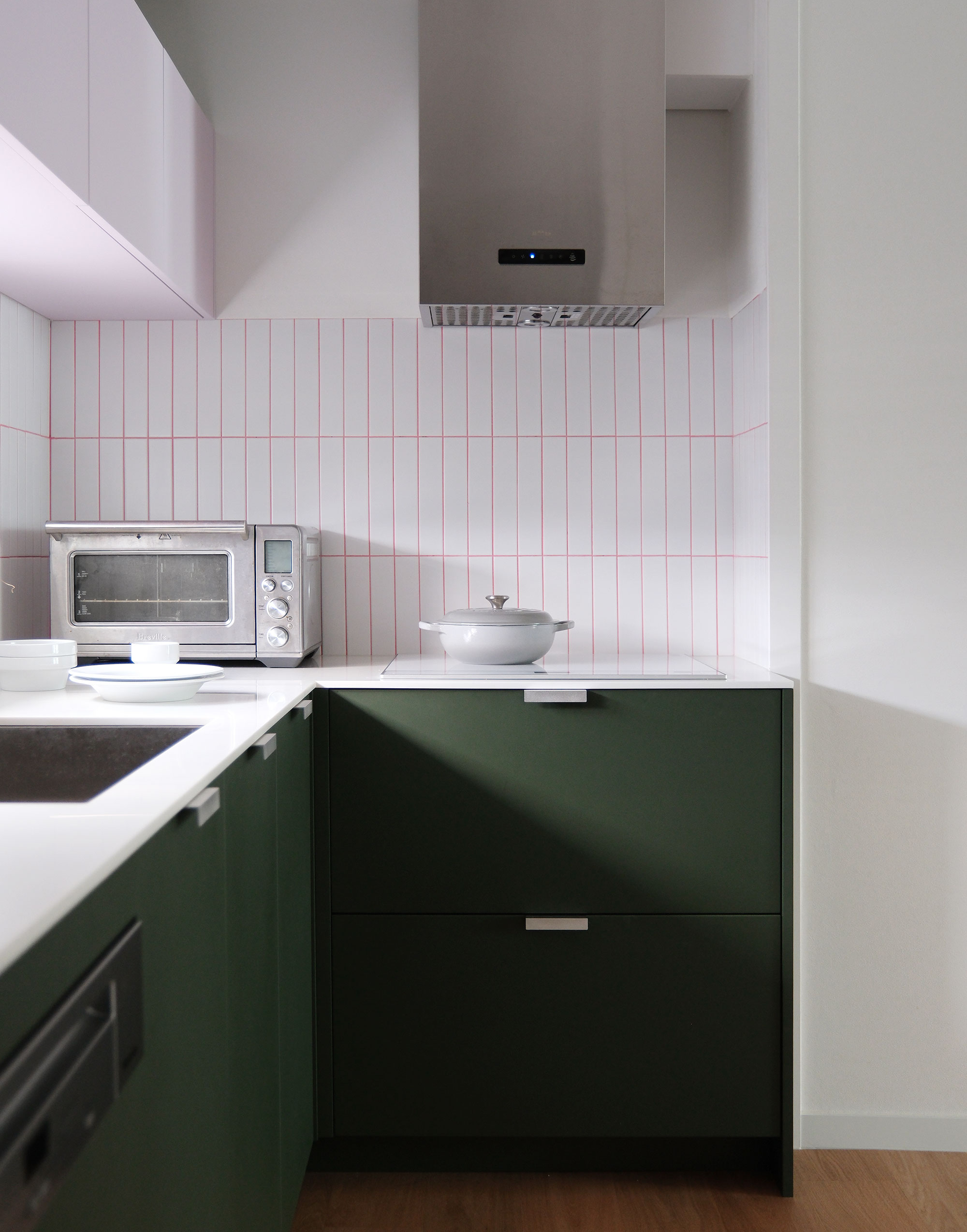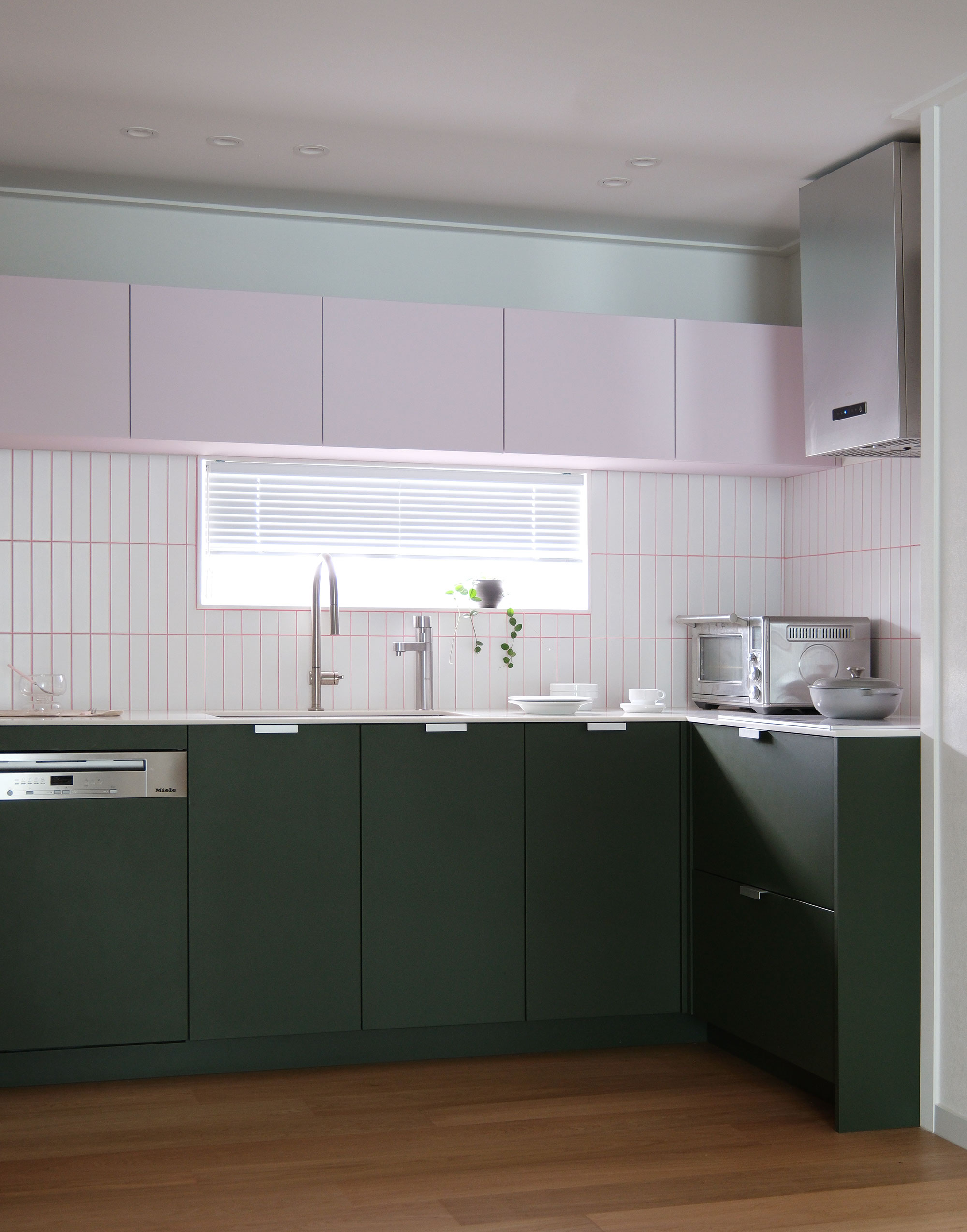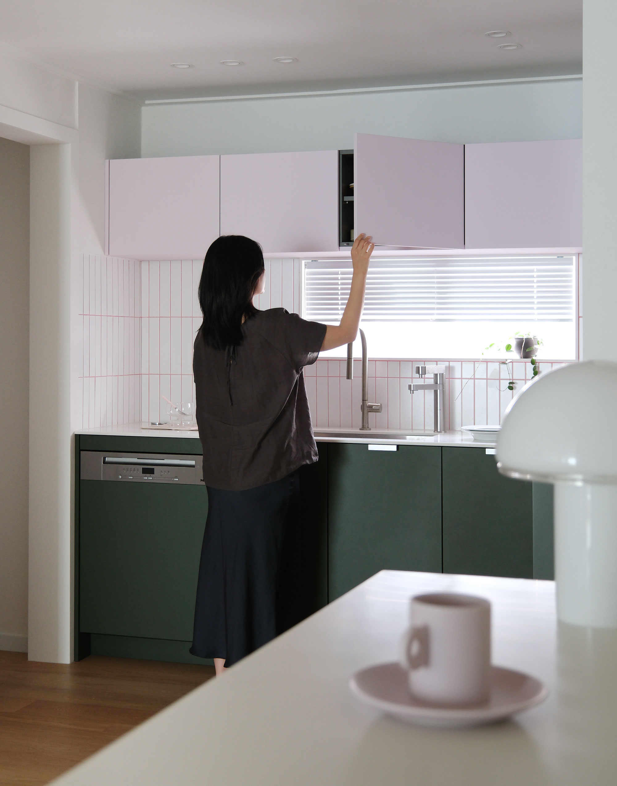 하부장의 Forest Green이 공간에 깊이를 더하고,
