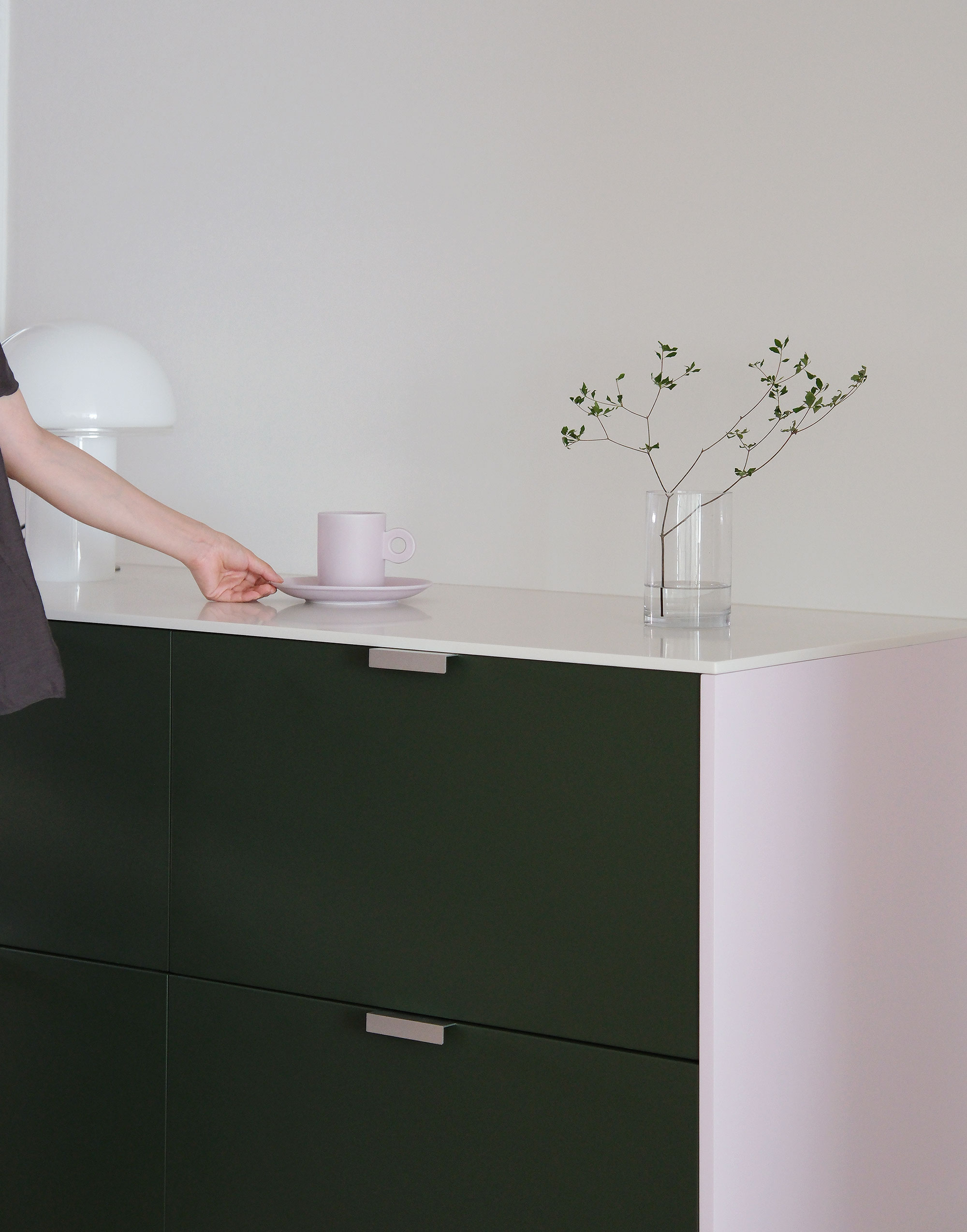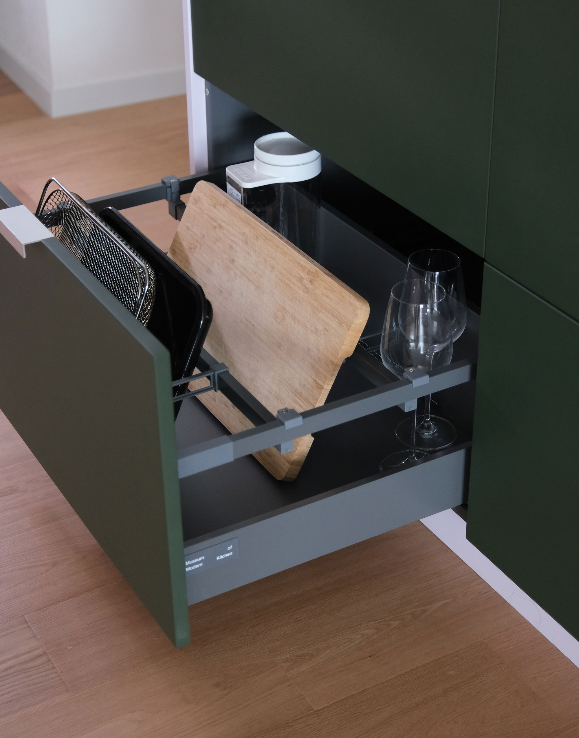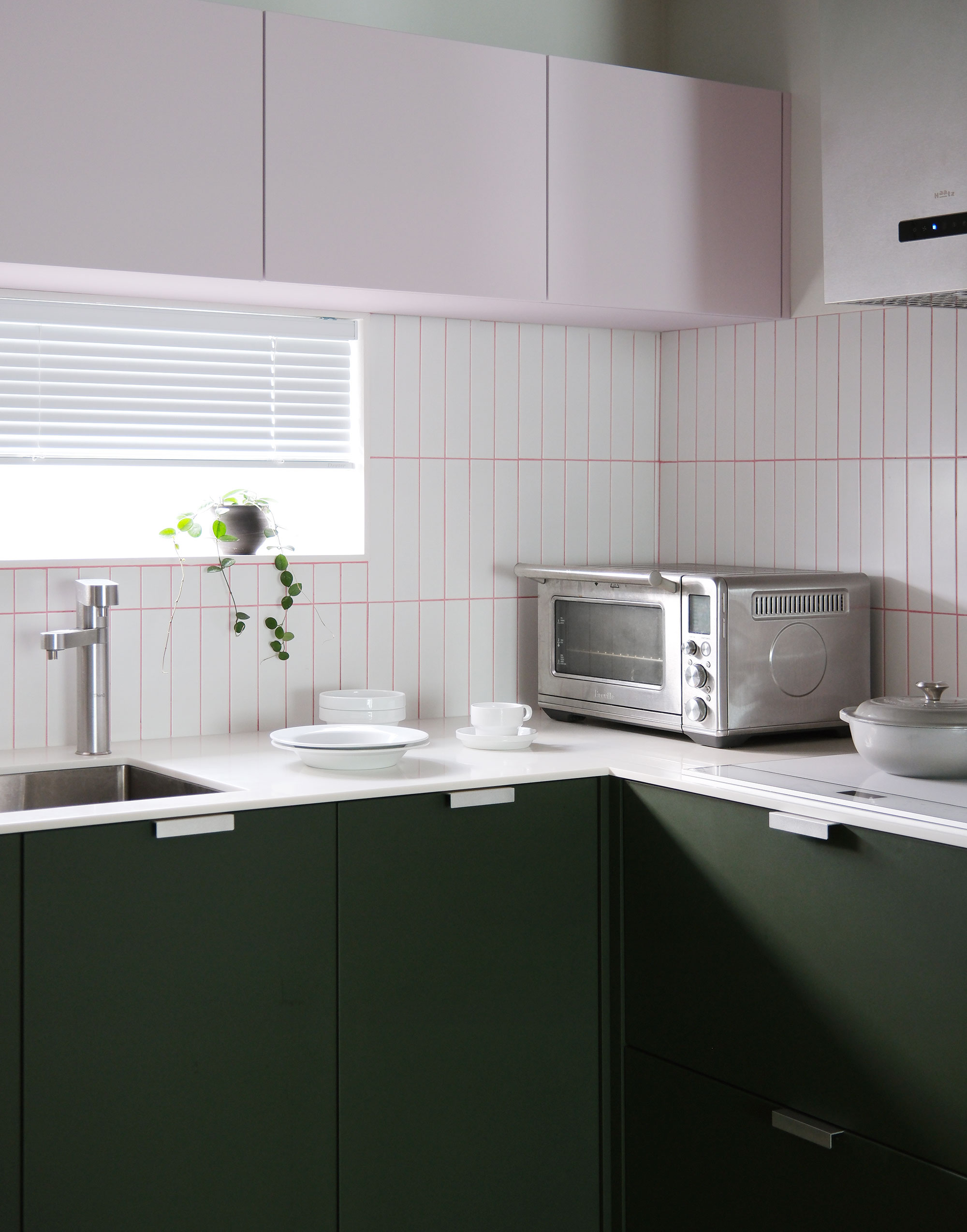 하부장의 Forest Green이 공간에 깊이를 더하고,