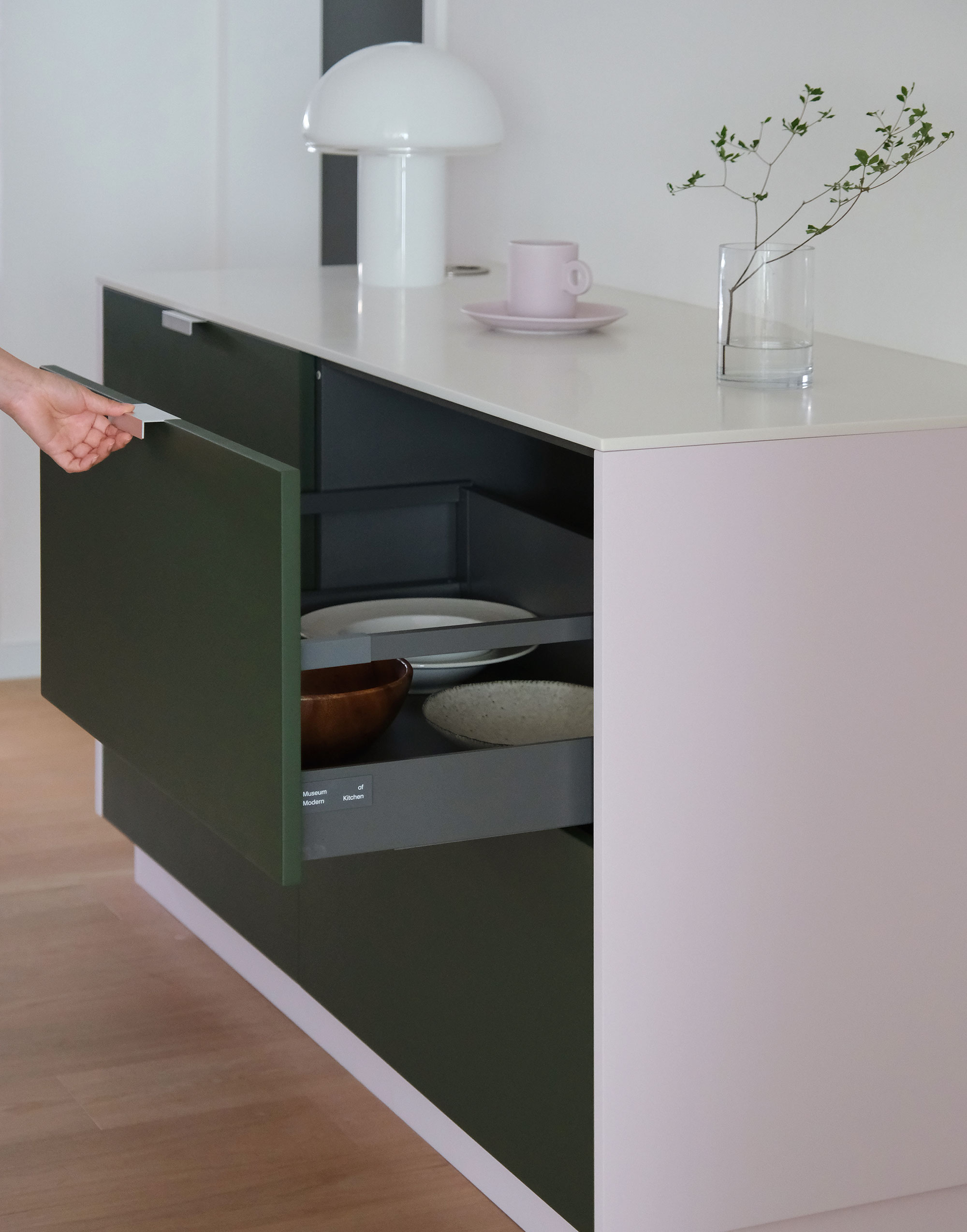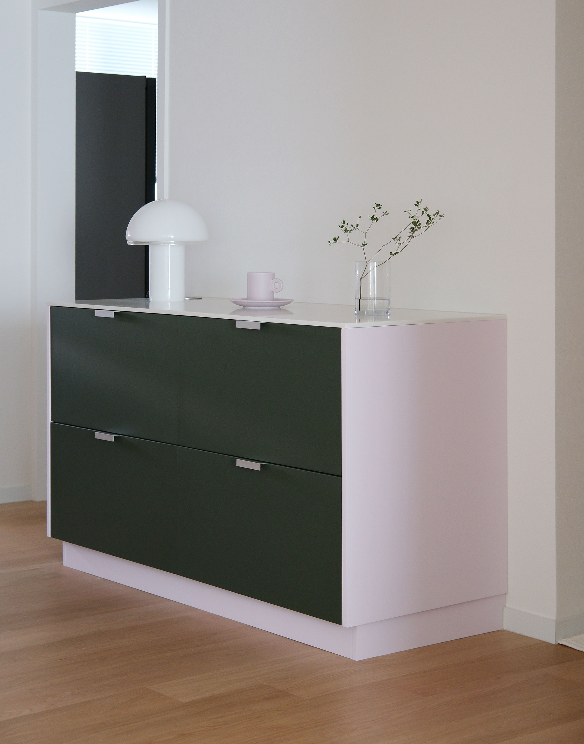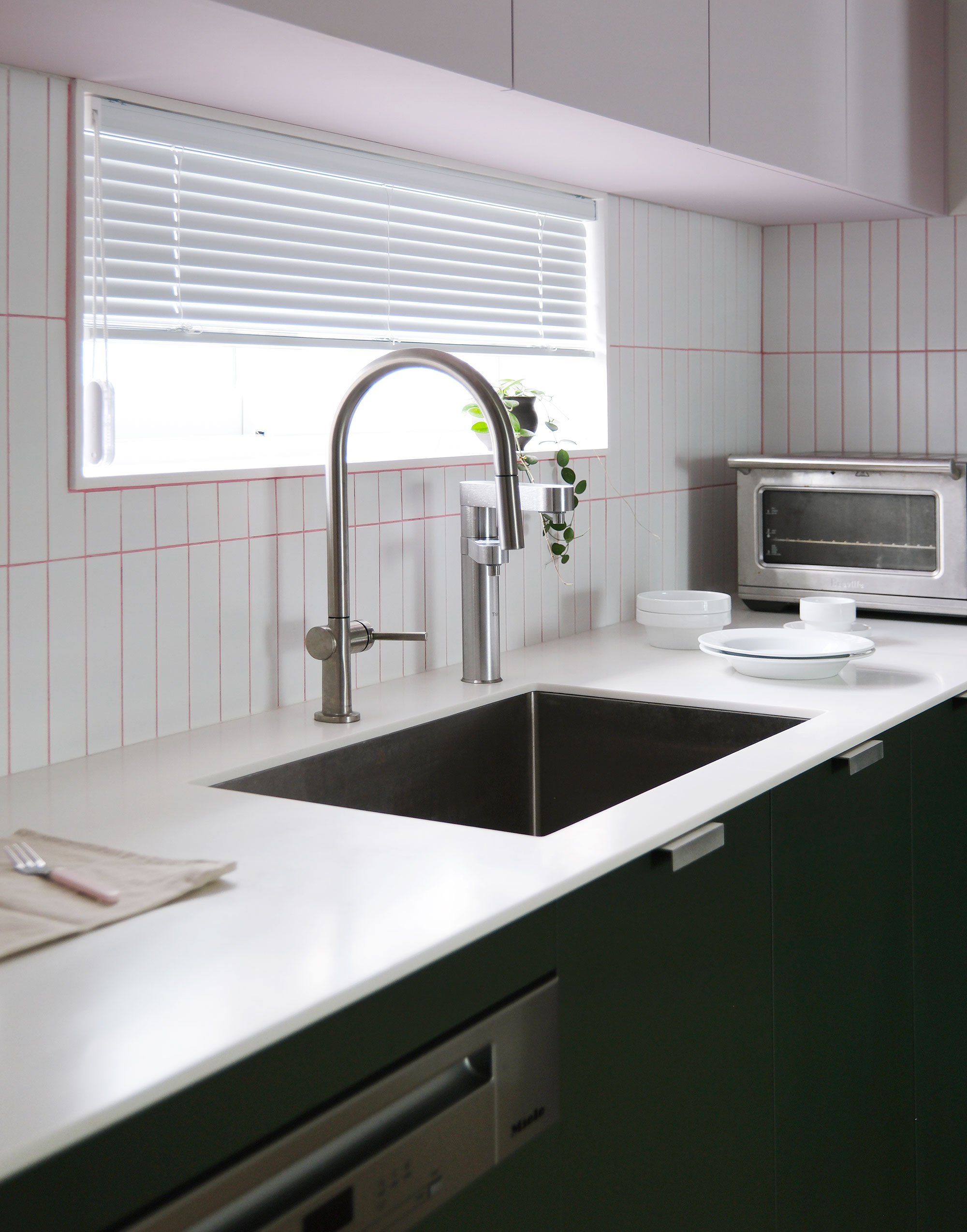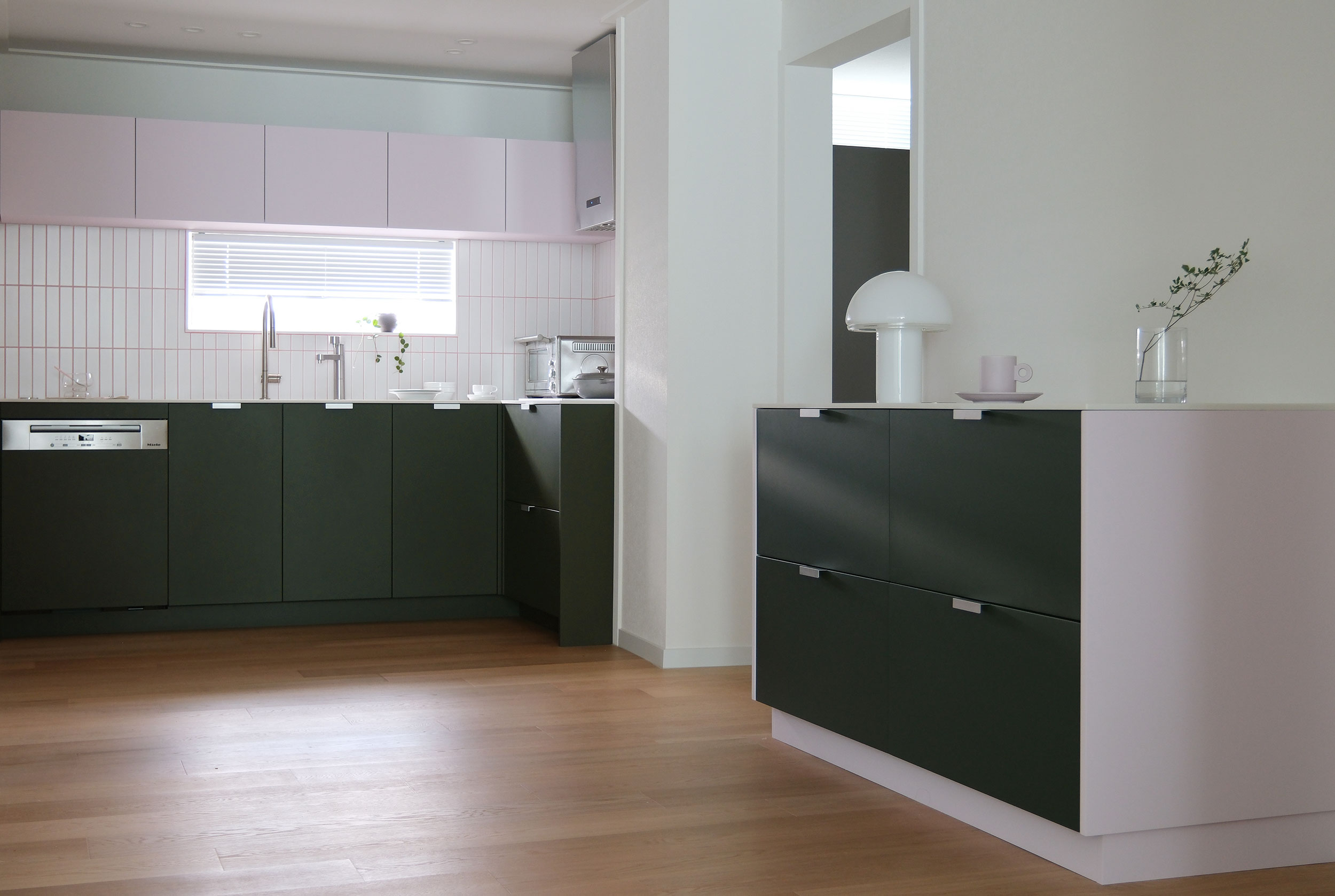 하부장의 Forest Green이 공간에 깊이를 더하고,