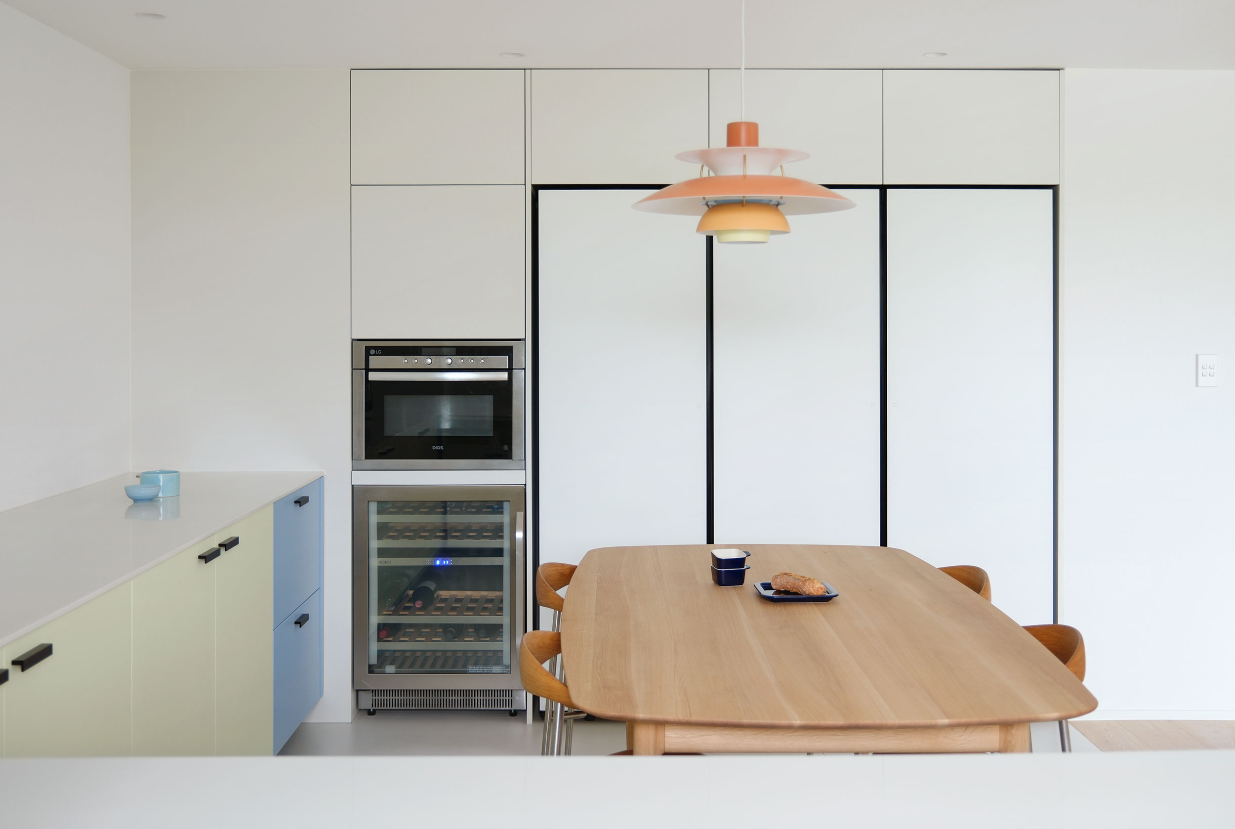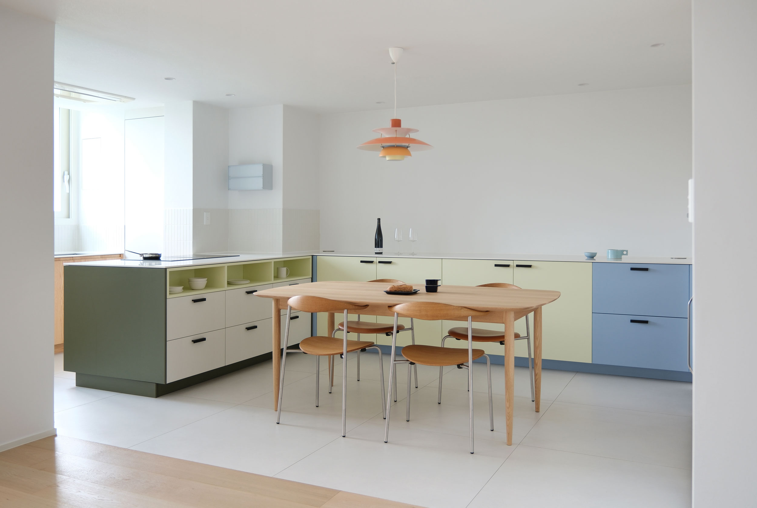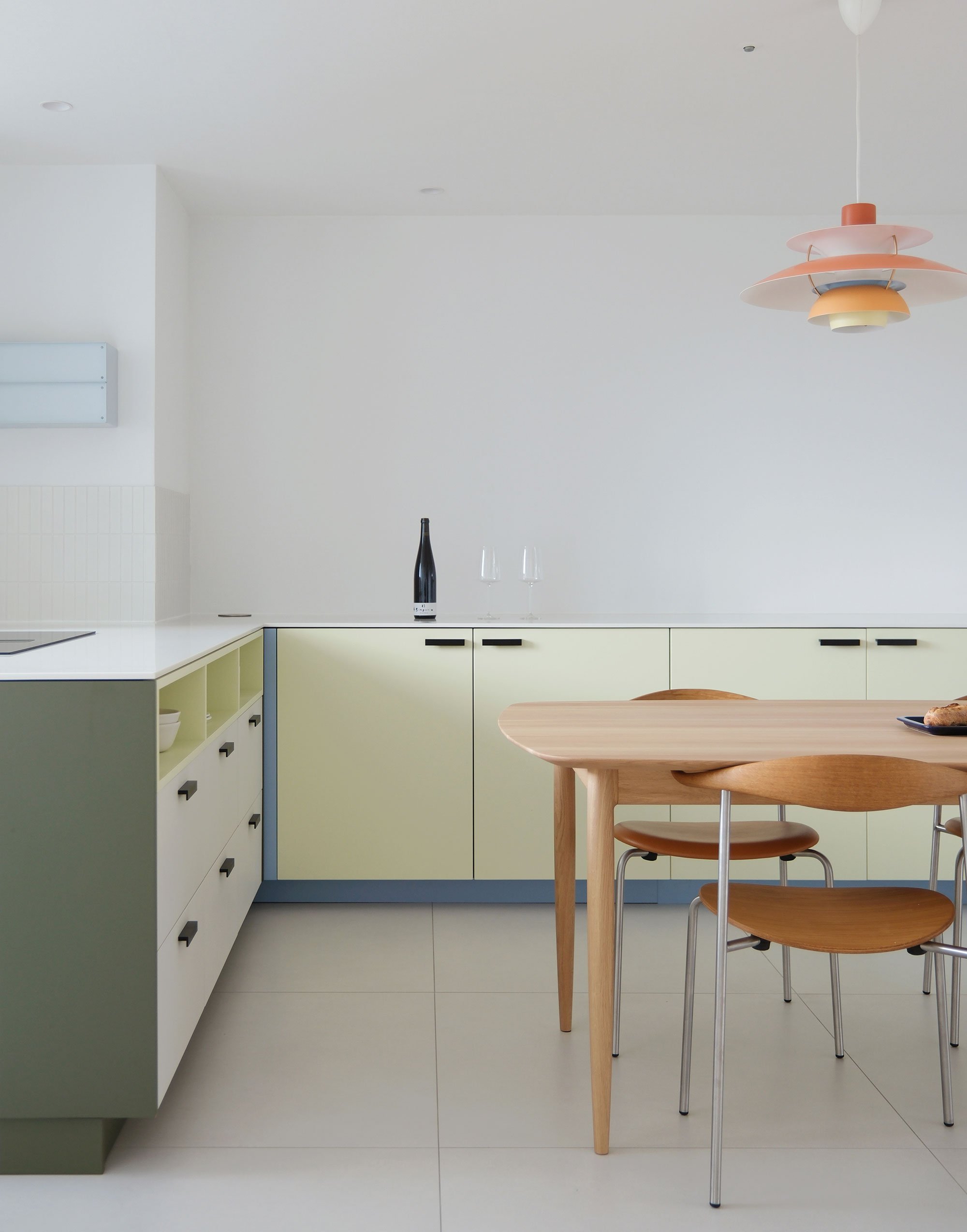특히 다이닝 공간에서는 경쾌한 컬러가 분위기를 밝히며,