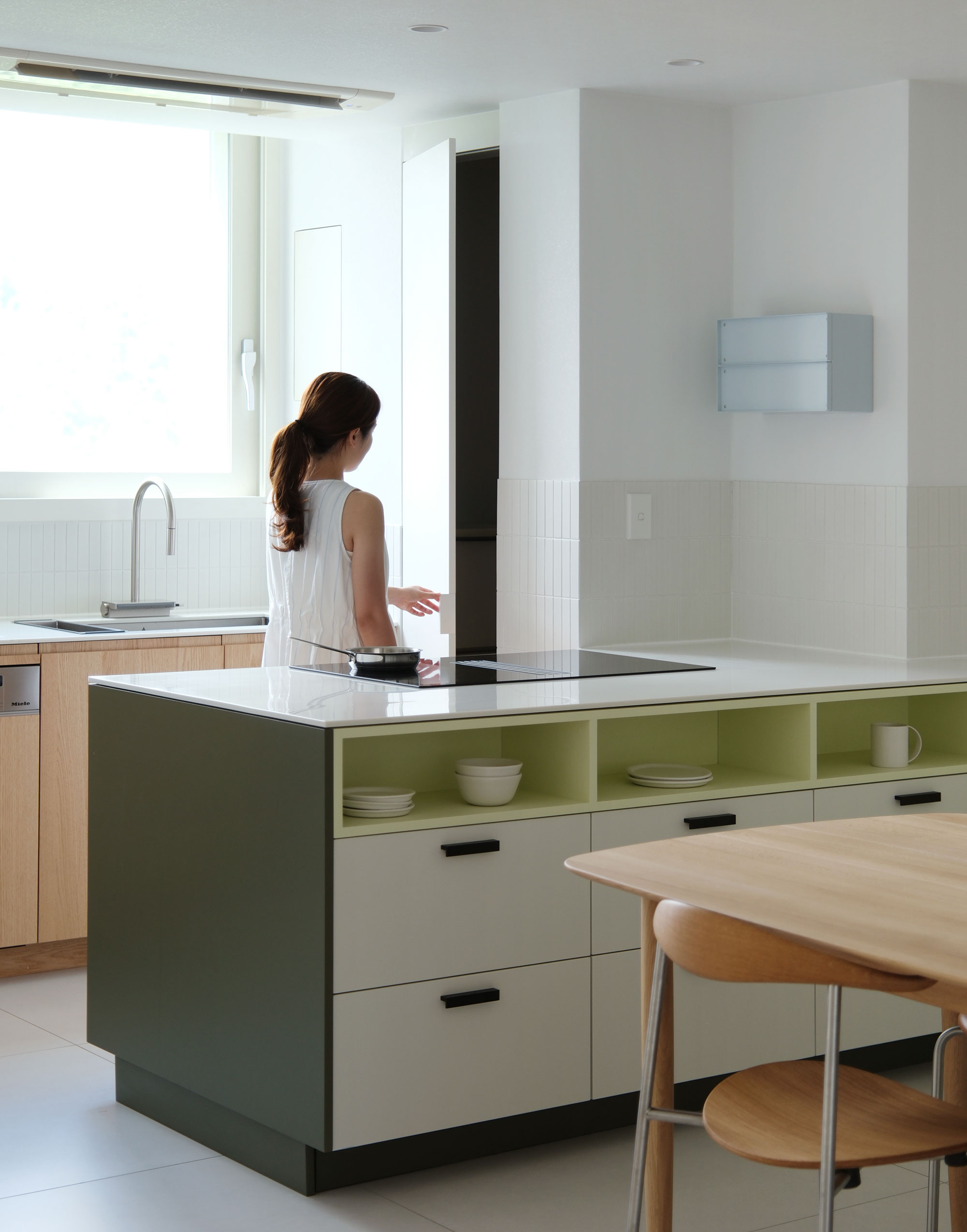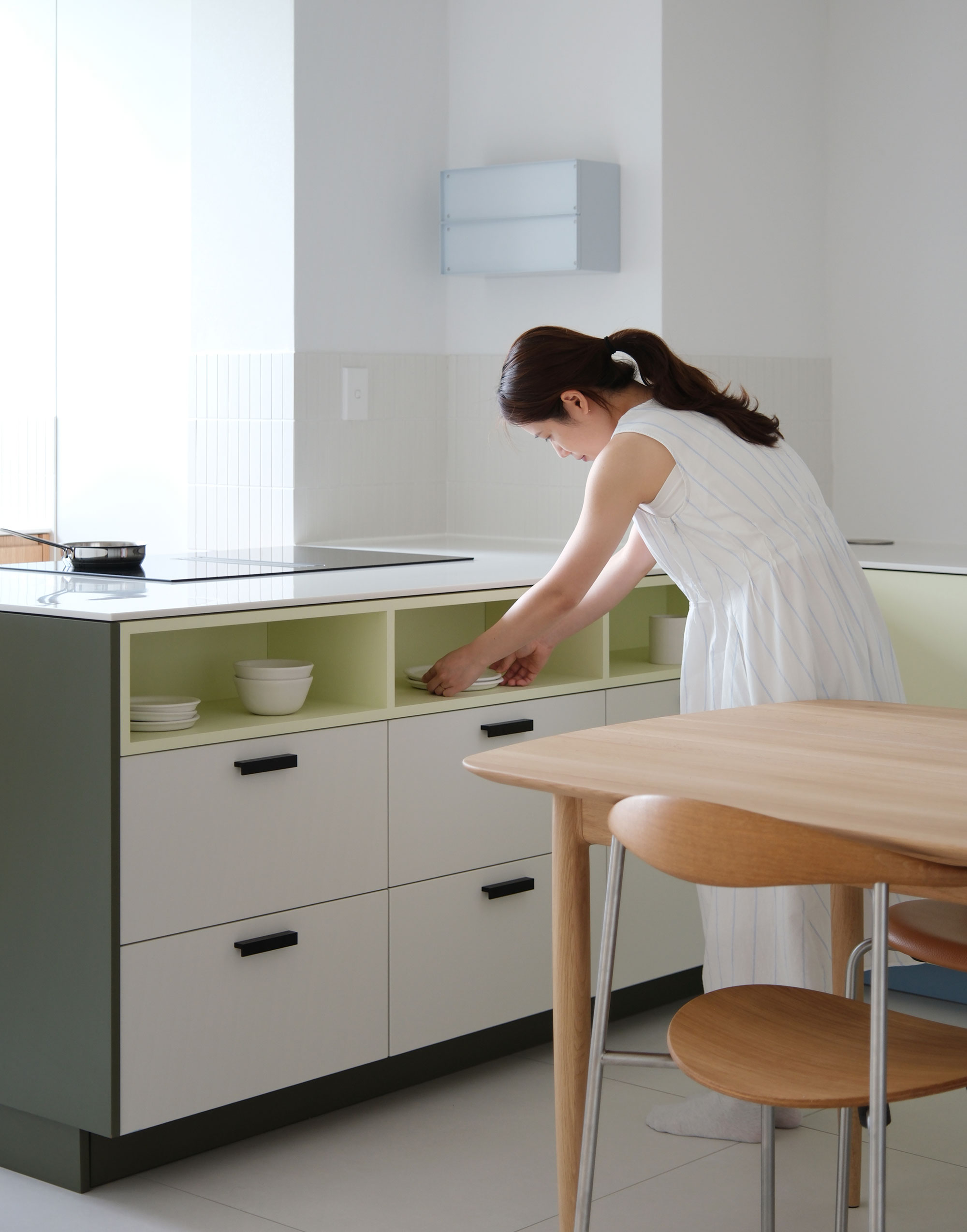 다이닝과 수납 영역에는 경쾌한 컬러 타입을 적용합니다.