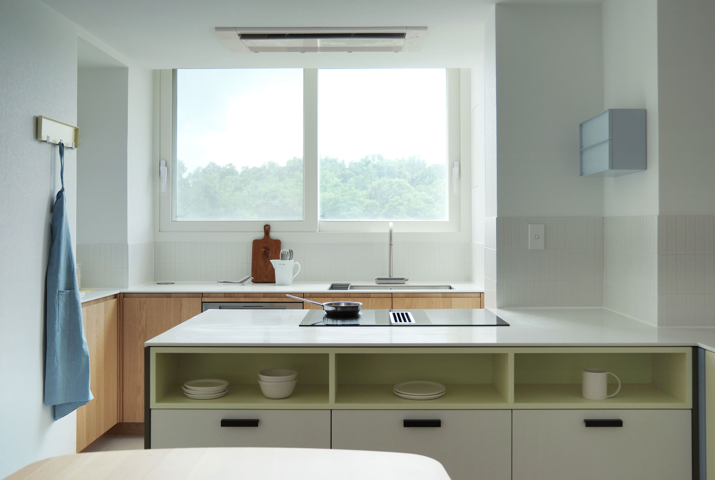 창가의 개수대 위치를 유지한 채 아일랜드를 옮기고,