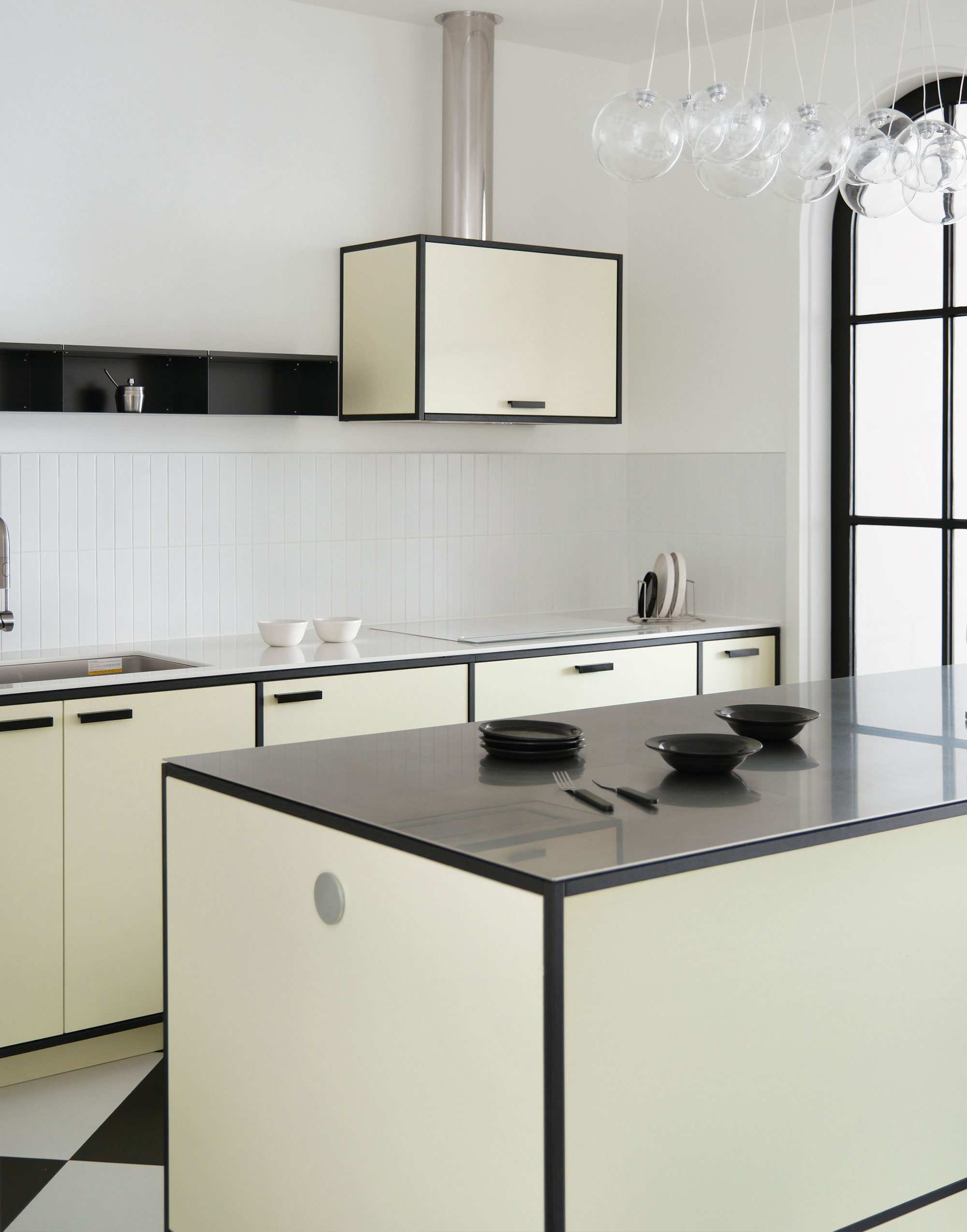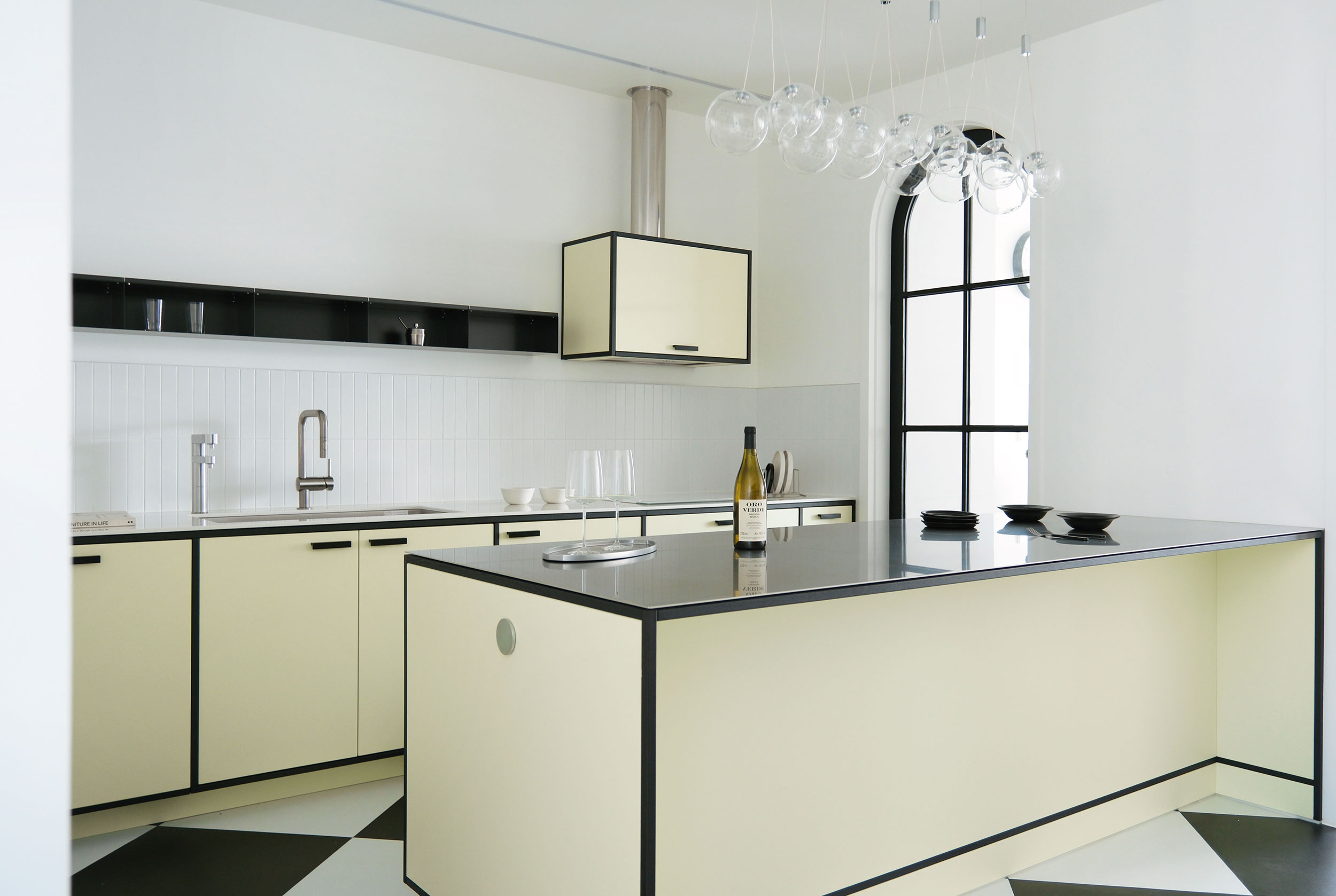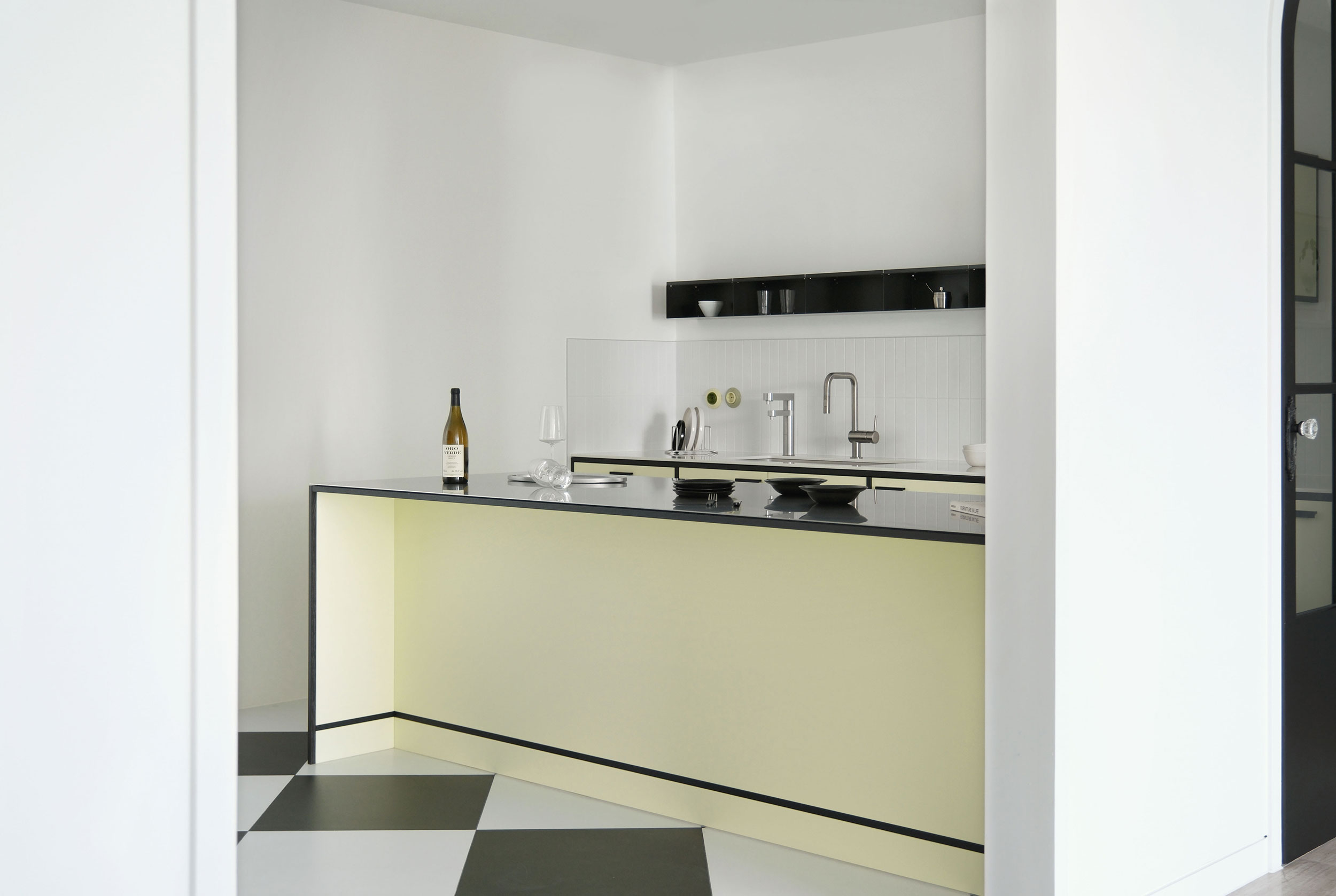 정교한 타일 패턴이 공간에 세련된 긴장감을 더합니다.