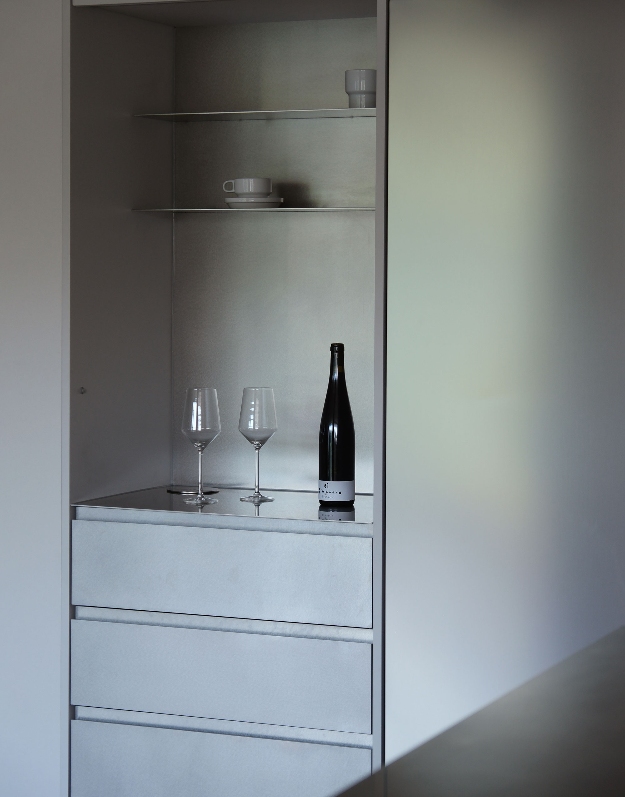 메탈 소재의 미니바는 주방에 묵직한 포인트가 되어